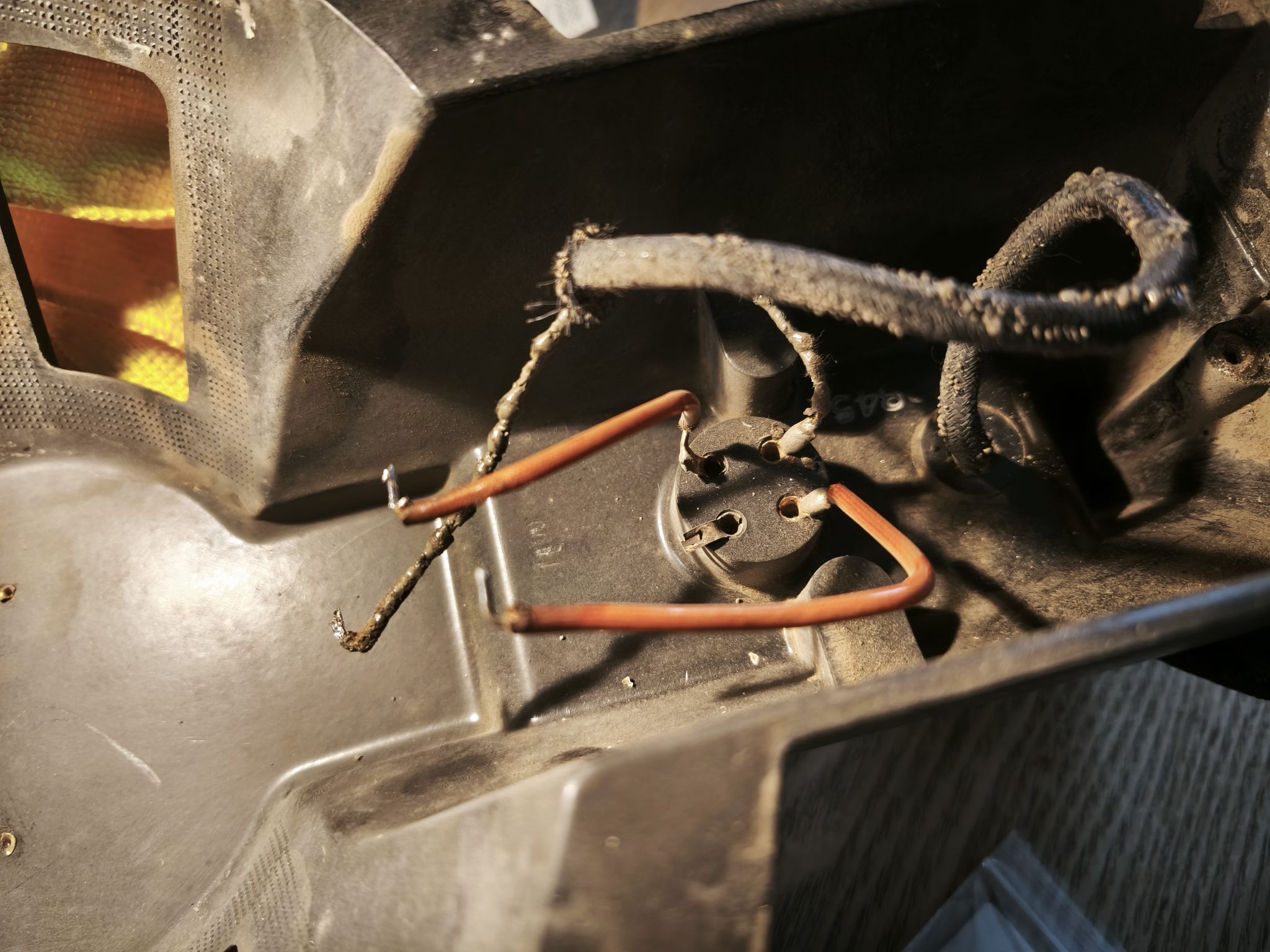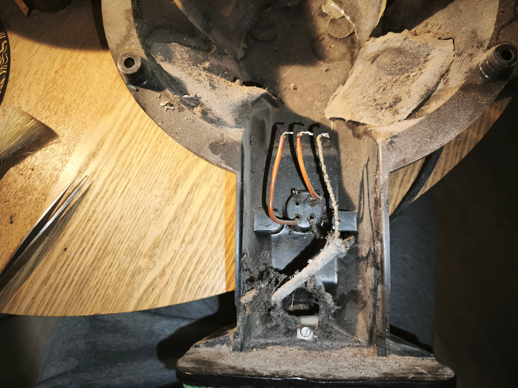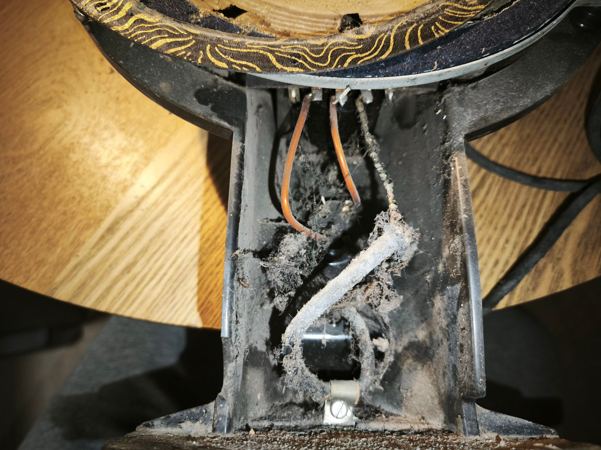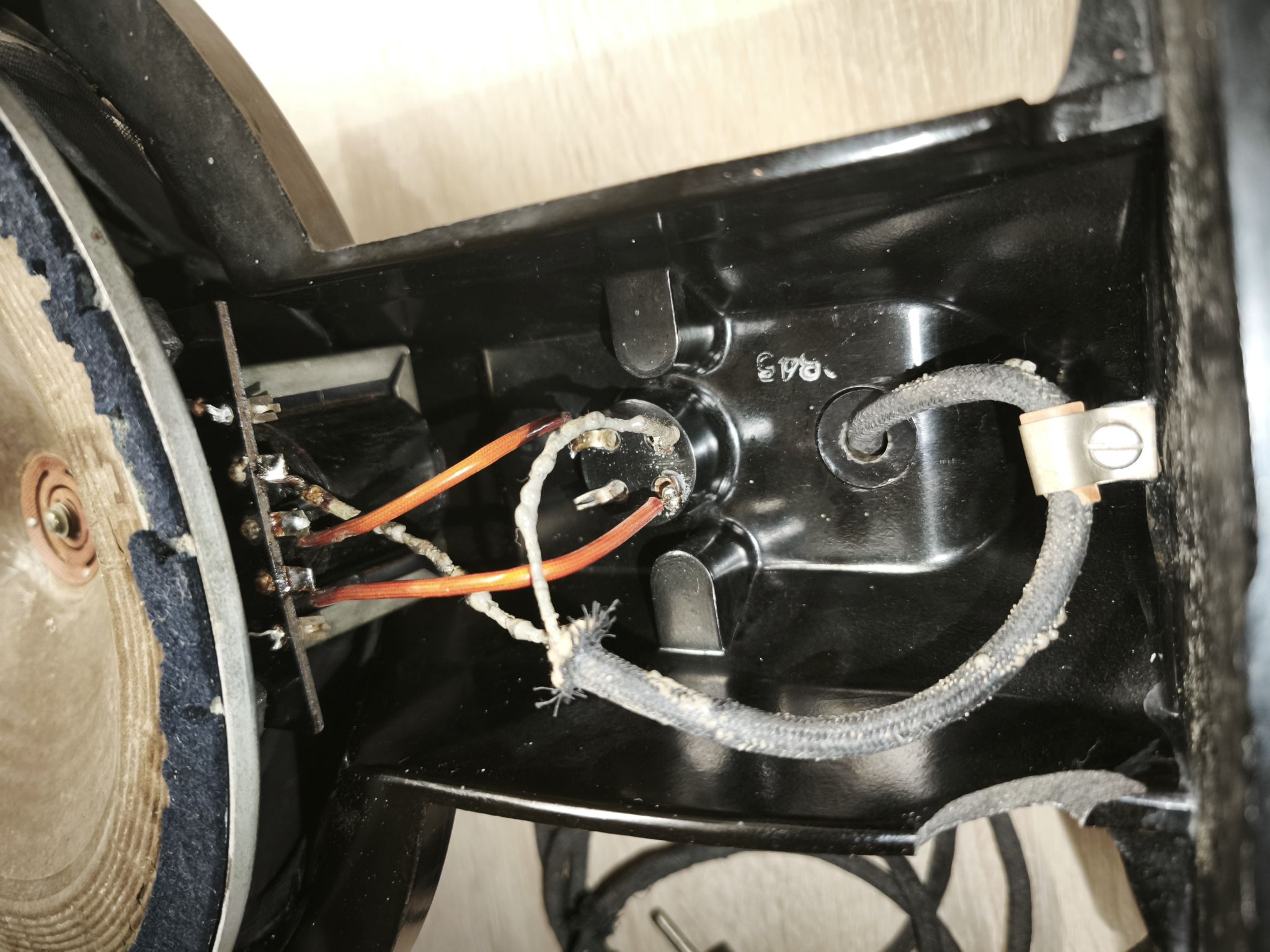 Je réassemble le reste dans l’ordre inverse du démontage. Le cordon est fonctionnel mais pas encore remplacé (je n’arrive pas encore à retrouver un cordon souple, gainé coton noire qui pourrait être un bon remplaçant … donc, en attendant, ca restera comme ca !).