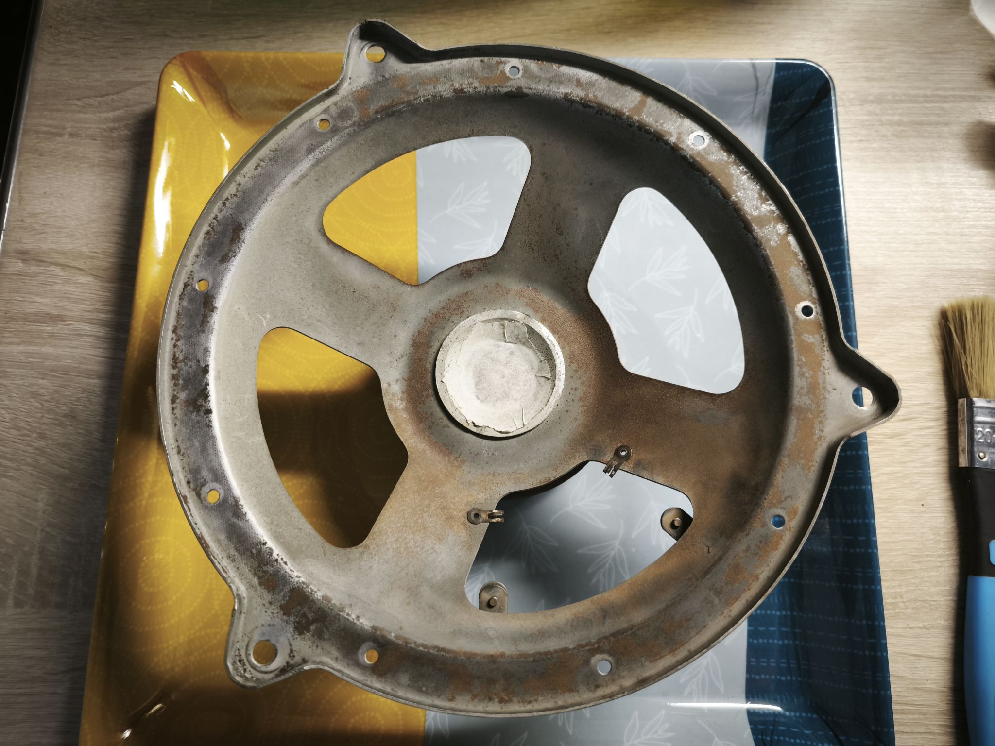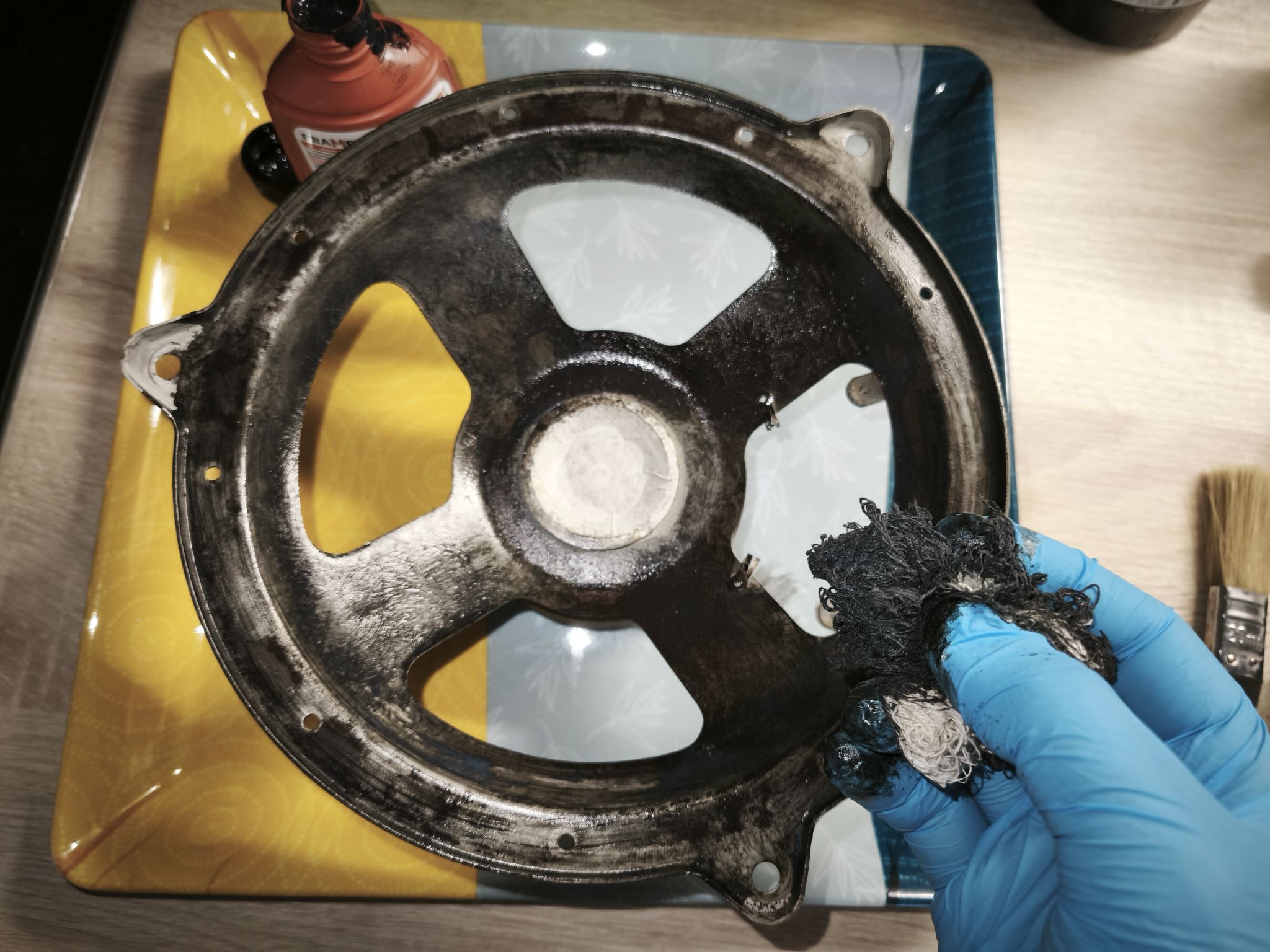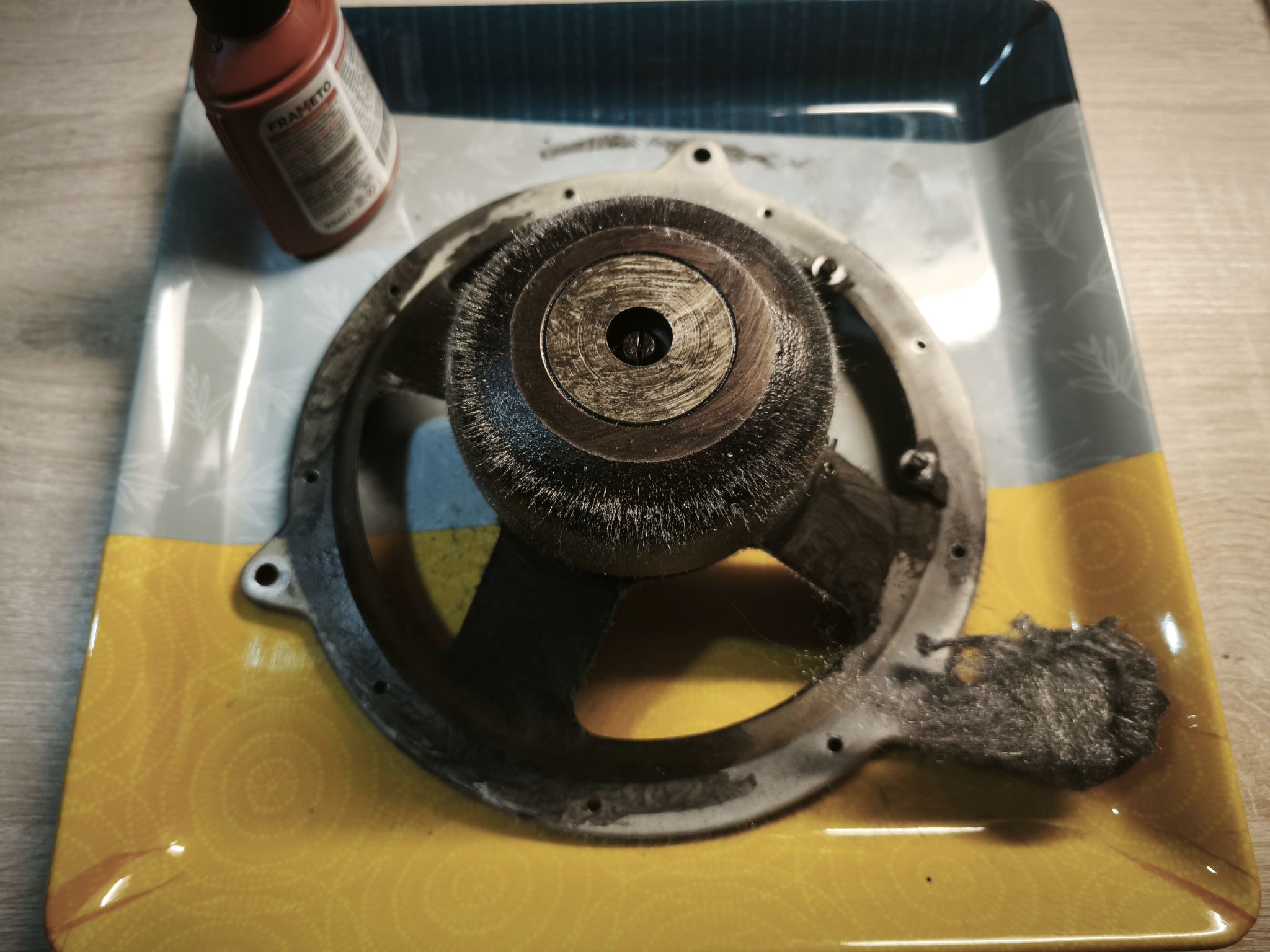 Pendant ce temps, je traite le saladier et l’aimant très oxydés :