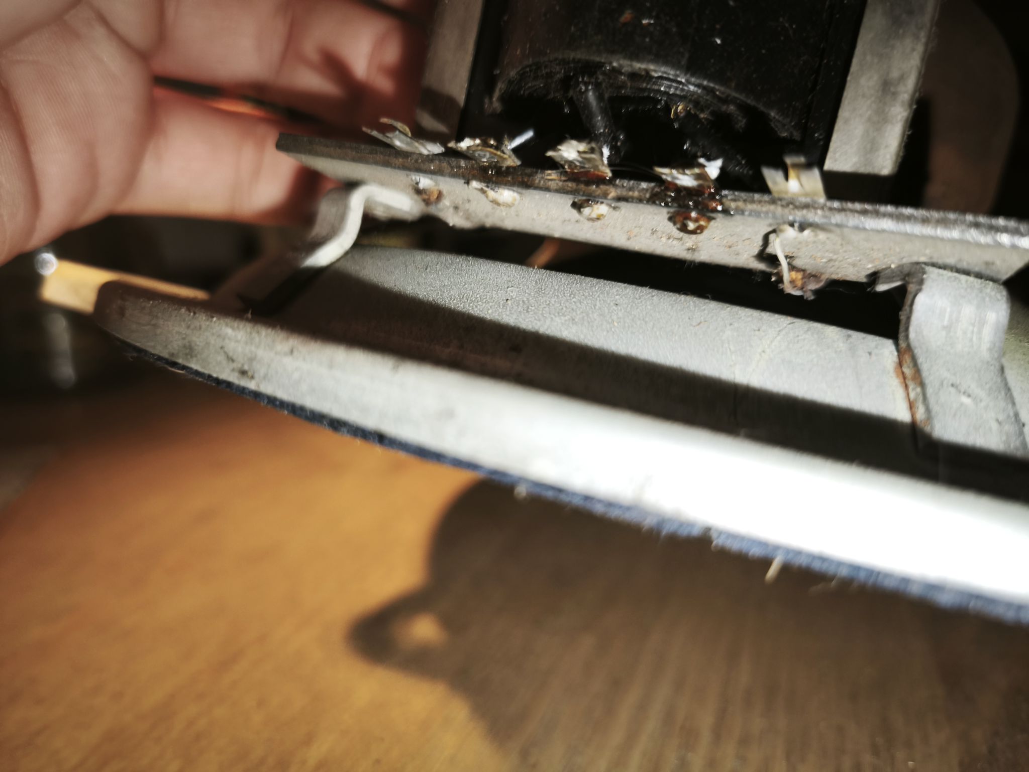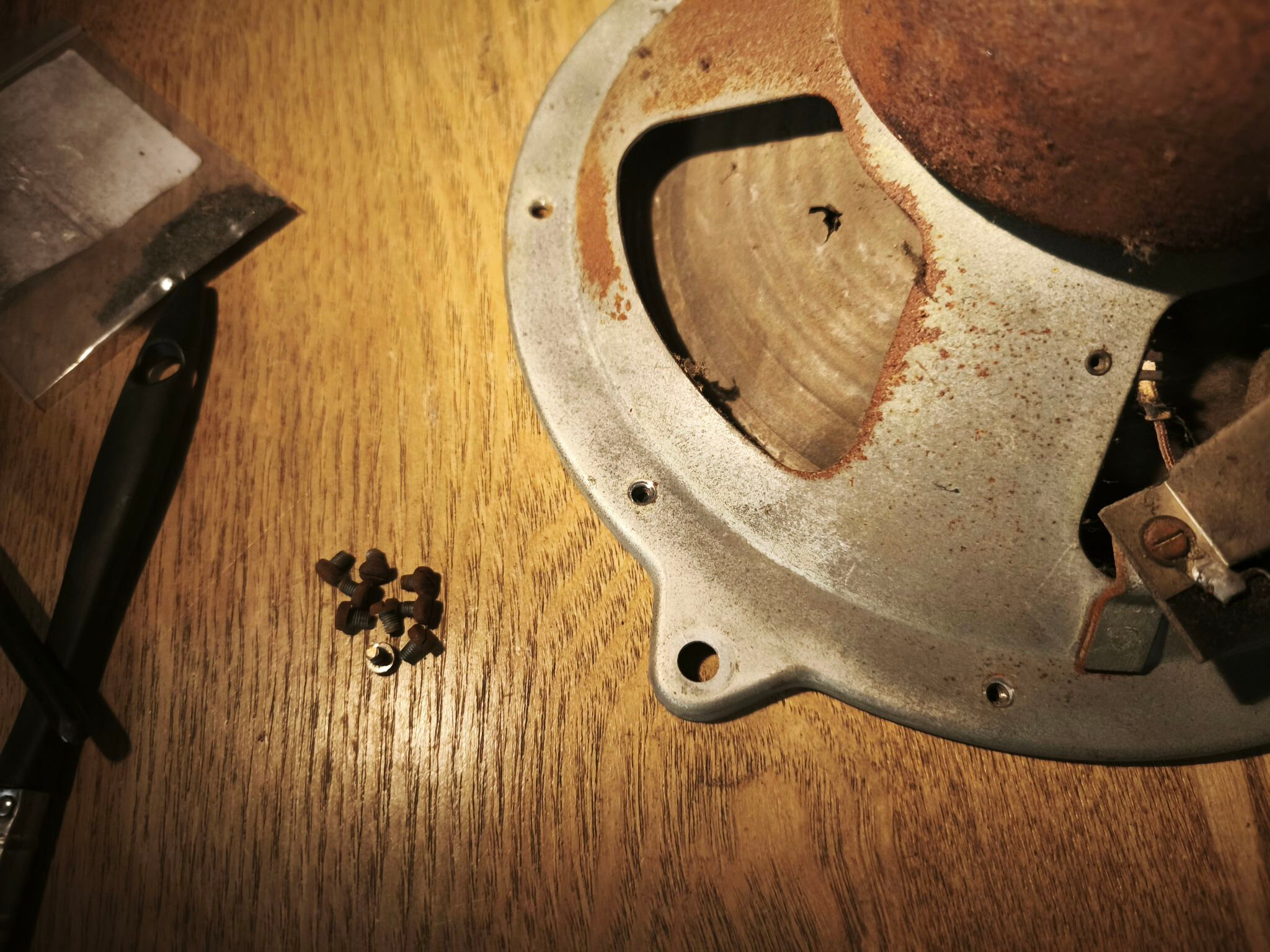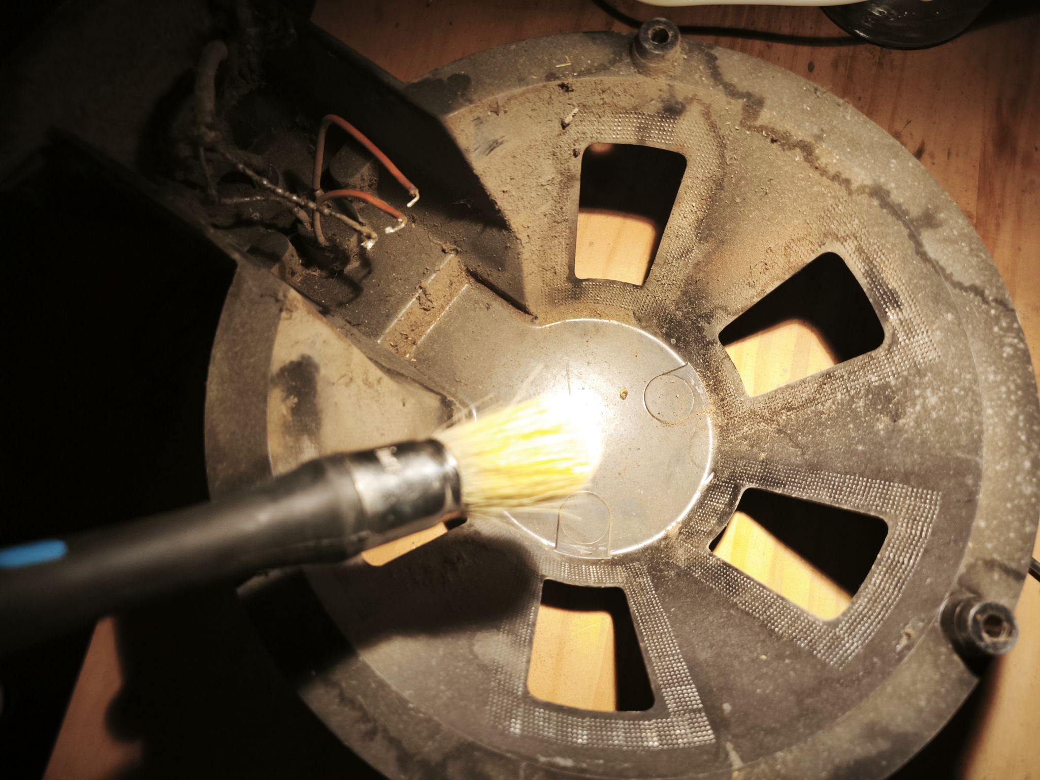 J’utilise une méthode simple mais efficace : une visseuse Lidl avec un morceau de paille de fer scotché. Attention à protéger l’entrefer avec du scotch, sinon limaille et rouille risquent de se retrouver dans l’entrefer et ca ne sera pas facile à enlever.