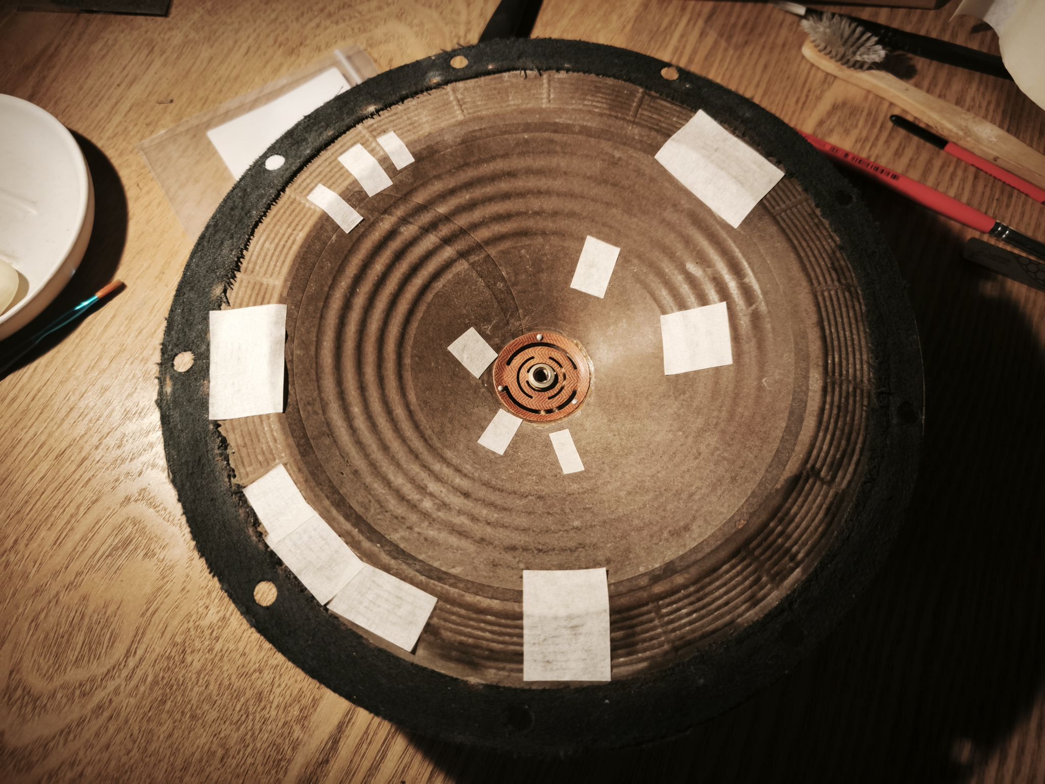 Puis je réassemble la membrane, centrée à la main (ou avec cales papier si nécessaire).