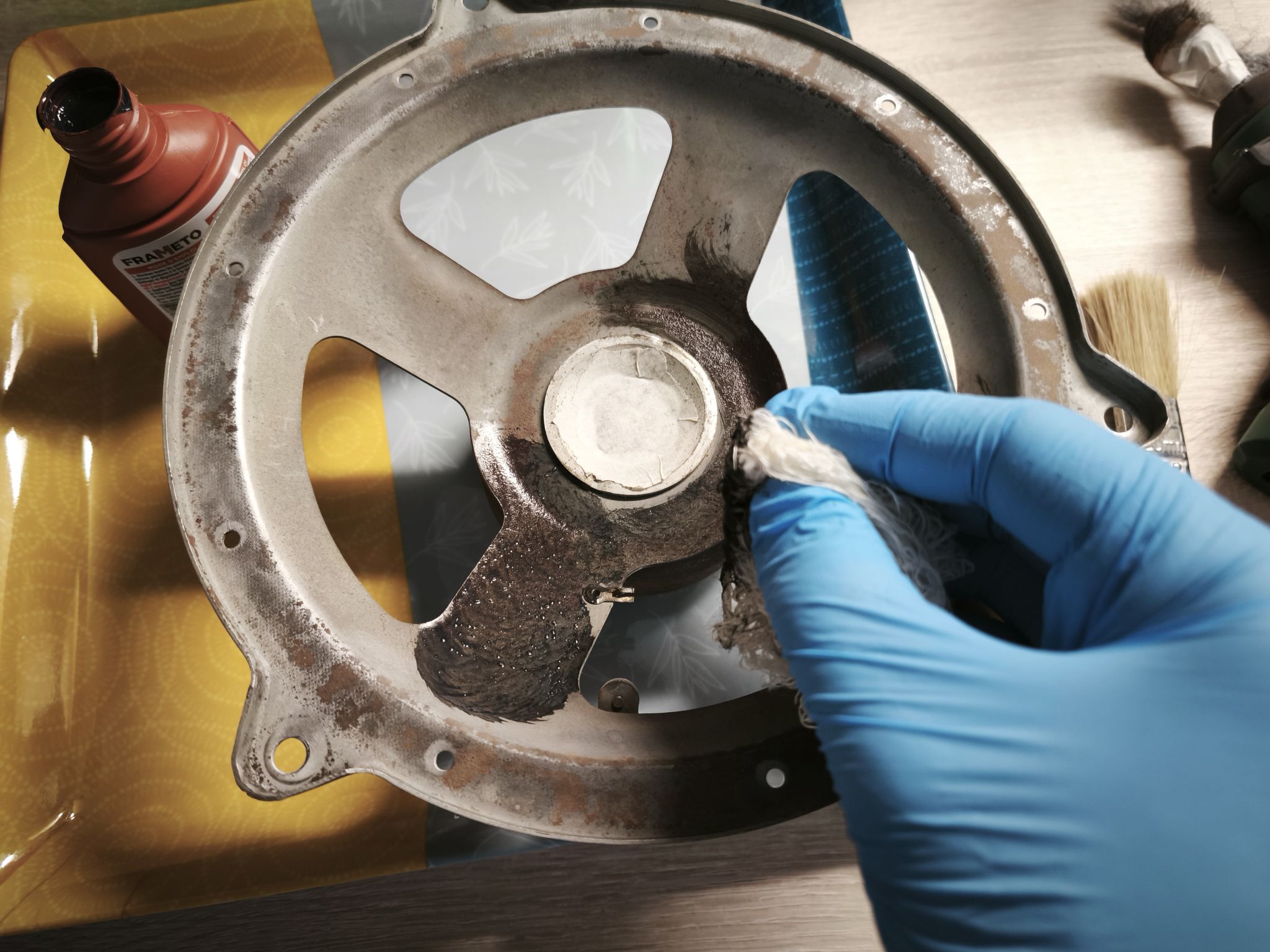 Pour l’extérieur, j’applique le Frameto uniquement sur les zones oxydées pour l’esthétique et je laisse sécher quelques heures.