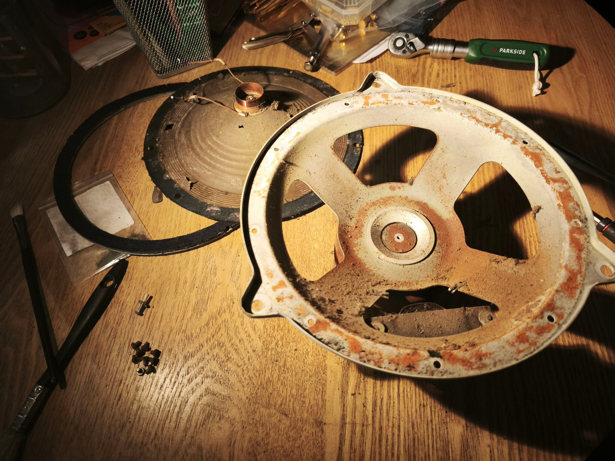 Voici le tout démonté, avec son lot de poussière :