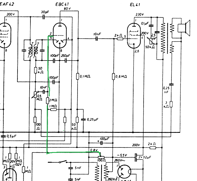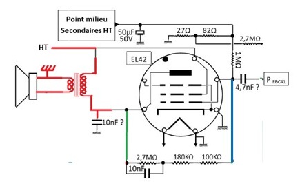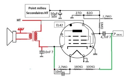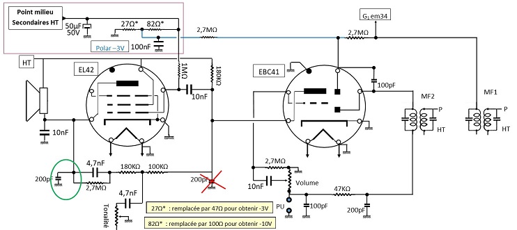 En gros, 47, pour les -3V de l’EBC41, en série, avec 120, qui nous donne les -10V pour G1 EL42.