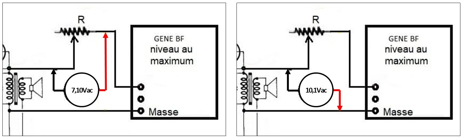 J’ai fait la mesure en réglant l’intensité d’entrée BF afin d’obtenir 1Vac ente le point chaud et la masse et j’obtiens grosso modo 750mV entre point chaud et entrée BF