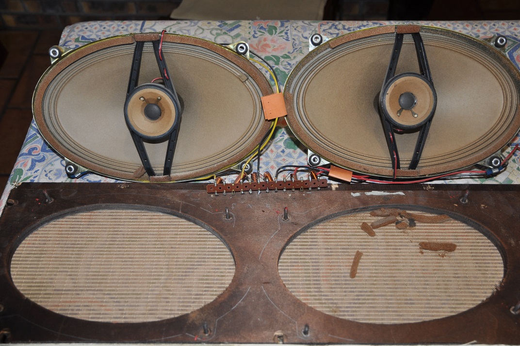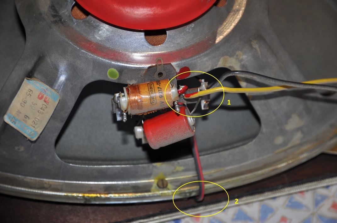 En fait, peu de choses à l’œil nu…une façade en verre de couleur différente ainsi qu’un nouveau voyant mono/stéréo…et aussi deux HP supplémentaires si on en croit le schéma électrique car Il y aurait deux cônes au lieu d’un dans chaque elliptique du 5595. Pour en avoir le cœur net, je prendrai une photo des elliptiques dès que je les aurai démontés pour pouvoir nettoyer le tissus acoustique taché.