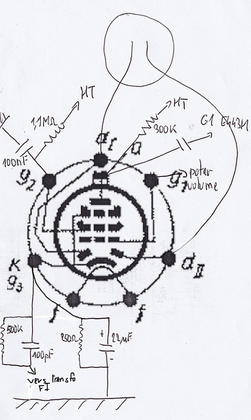 En réalité la 500k et le 100pf qui partent de la G3 ne vont pas à la masse mais aussi dans le transfo FI.