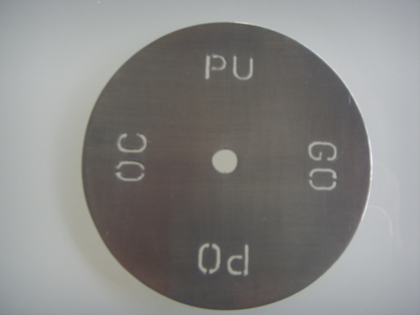 Les inscriptions ne doivent pas être écrites, c’est la matière qui doit être enlevée afin que l’ampoule placée à l’arrière éclaire à travers les lettres avec la bonne couleur puisque il y aura un filtre de couleur différente pour chaque gamme collé à l’arrière du disque