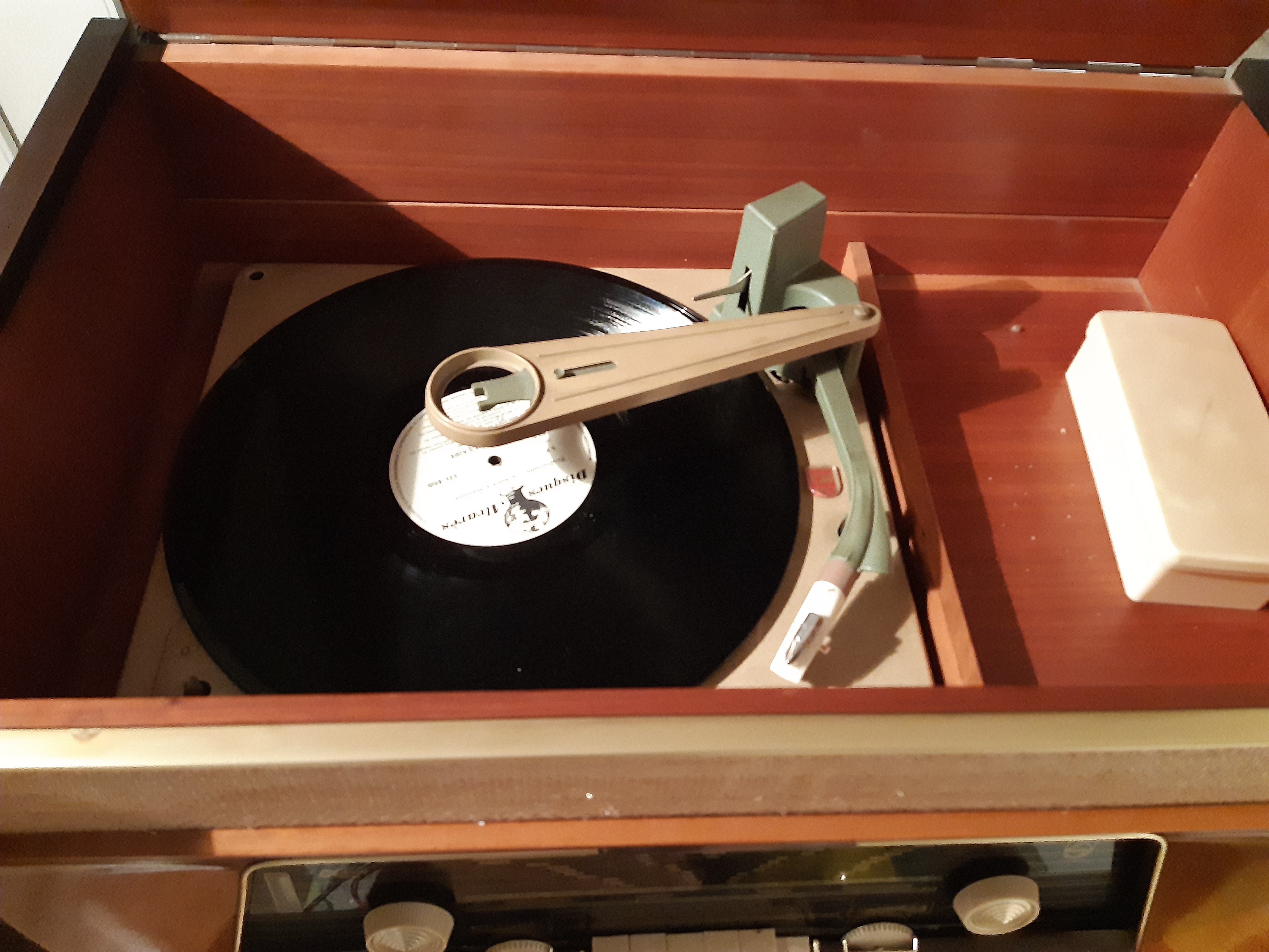 Bonjour, je restaure des postes depuis déjà 40 ans mais avec des hauts et des bas (j’étais adhérent Radiofil dans les années 80) mais je ne suis pas un expert pour autant ! Je suis un fan de TSF à lampes et depuis la disparition de France Inter en GO je me concentre sur les postes avec FM. Ayant une place limitée, je me suis débarrassé de pas mal de radios sans intérêt ou dont la caisse était trop abîmée pour moi. Il doit tout de même me rester une vingtaine de postes dont la majorité fonctionne et j’en dissémine un peu partout dans la maison ! Par contre, je suis assez novice sur les platines disques et là j’ai fait fort (et j’ai fort à faire!) car je ne pensais pas, en achetant ce combiné Philips, tomber sur un changeur automatique. J’essaierai de poster plus d’images de cette restauration dans les prochains jours.