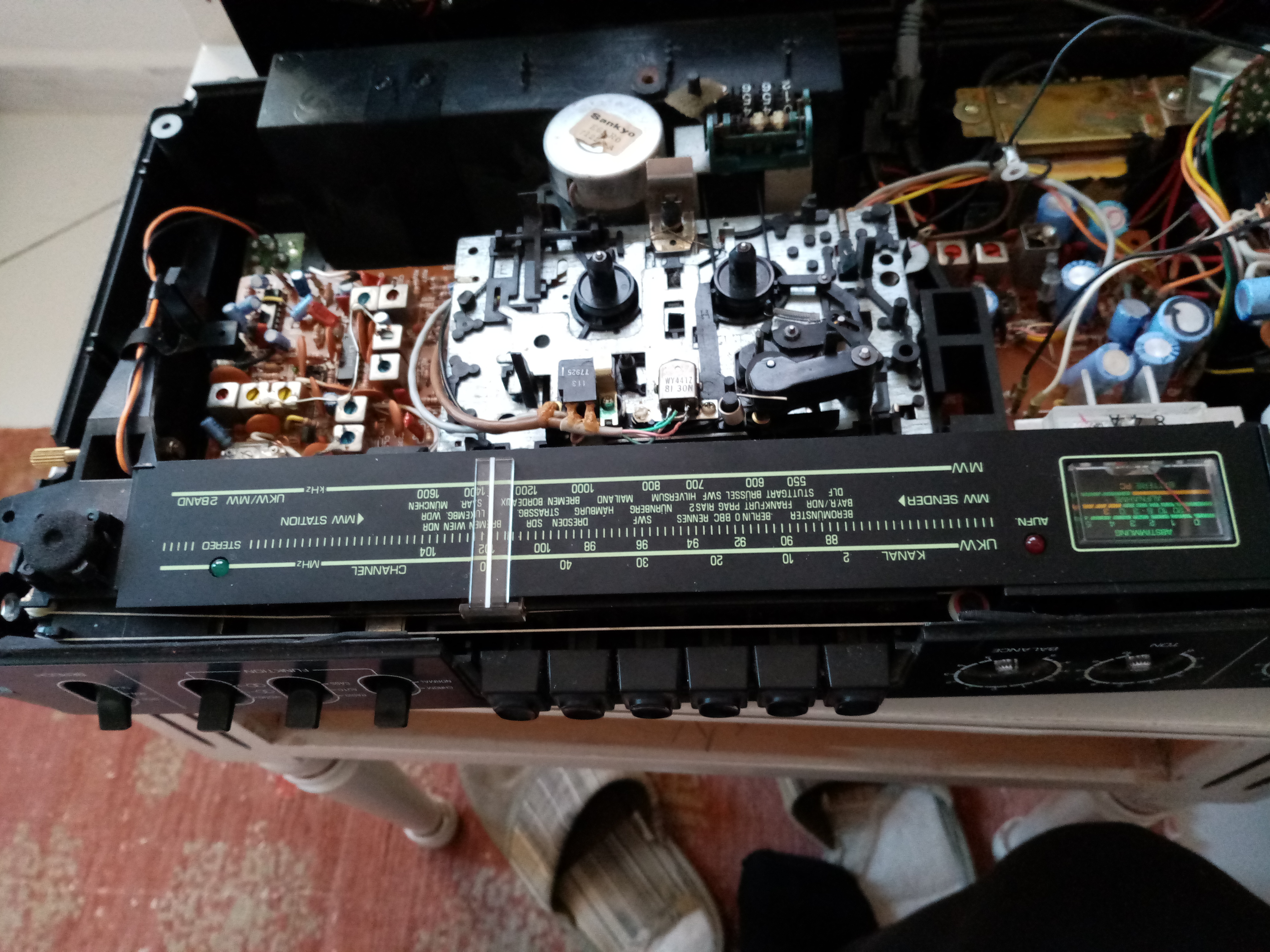 de toute manière quand on appui sur la touche play on appui sur un contact bilames par l’intermédiaire du mécanisme ce contact est censé couper la radio je pense qu’il faut commencer a regarder de ce coté