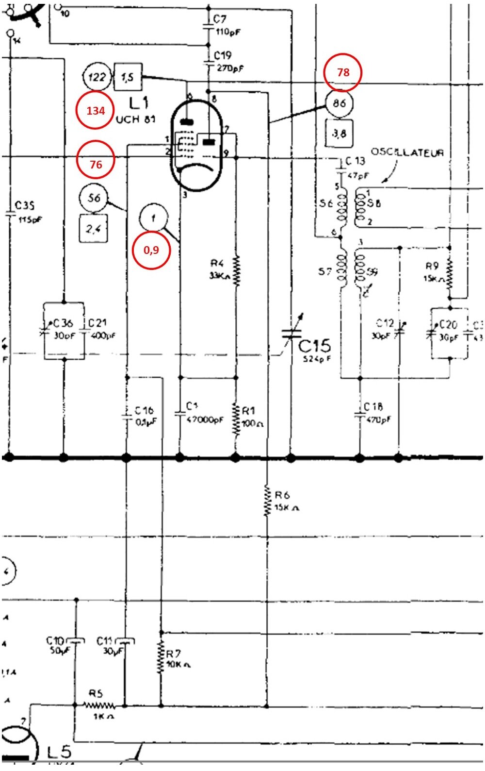 Je n’ai plus en tête les autres mesures laissées à l’atelier mais c’est faible même en remplaçant l’UCH81 par une neuve qui fait gagner quelques dixièmes de volts