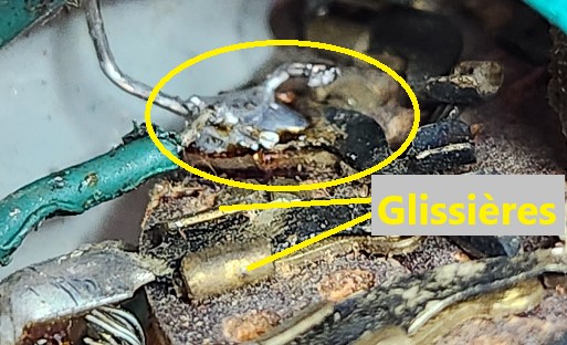 j’ai remplacé pas mal de résistances ayant dérivées et bien sur la dernière située sur la galette de changement de bande en la dessoudant j’ai cassé une cosse à œil d’une lamelle qui reçoit le contact lors de la rotation ![]()