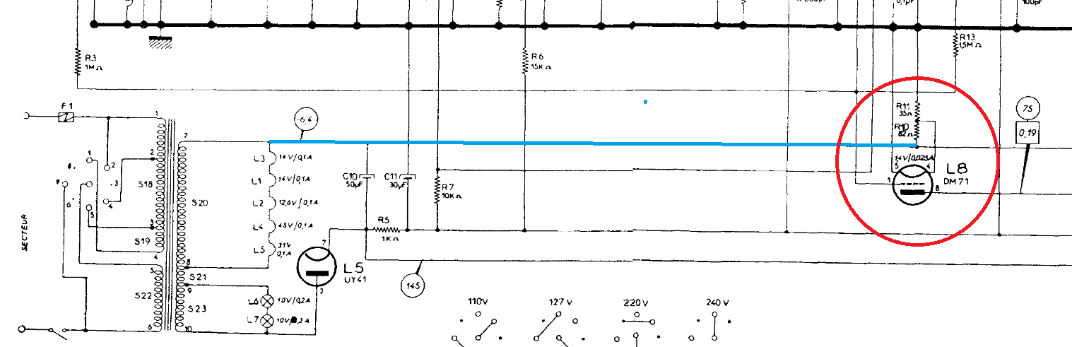 • Je ne comprends pas la « prise intermédiaire » dans la R de Polar pour obtenir le 1,4V d’alimentation du filament du DM71.