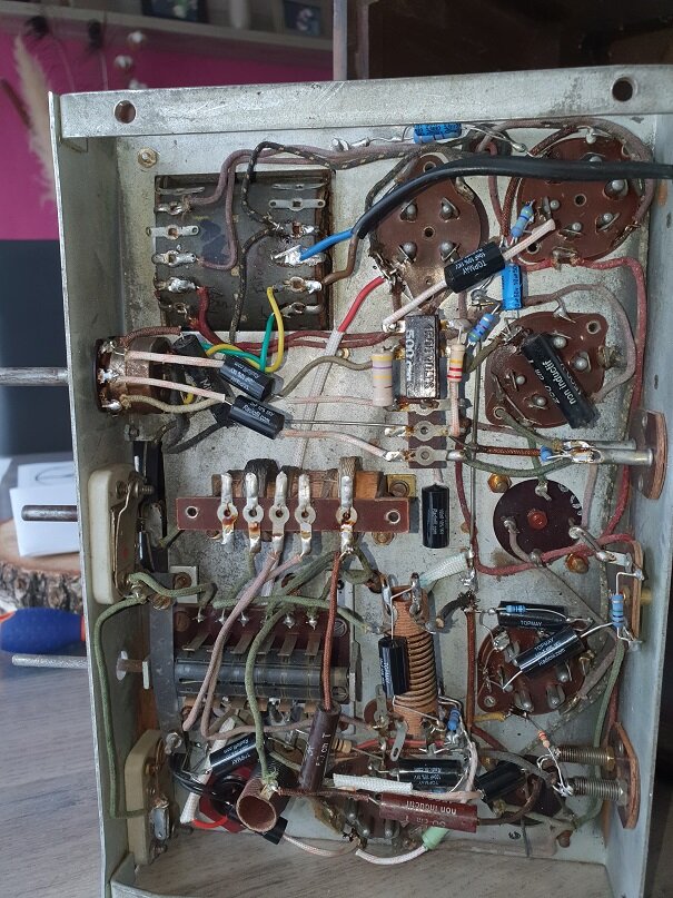 J’ai vérifié les capas qui n’ont pas été changées qui font pour la plupart 250 cm mica elles sont dans les clous. (278pF mesurées 229pF)