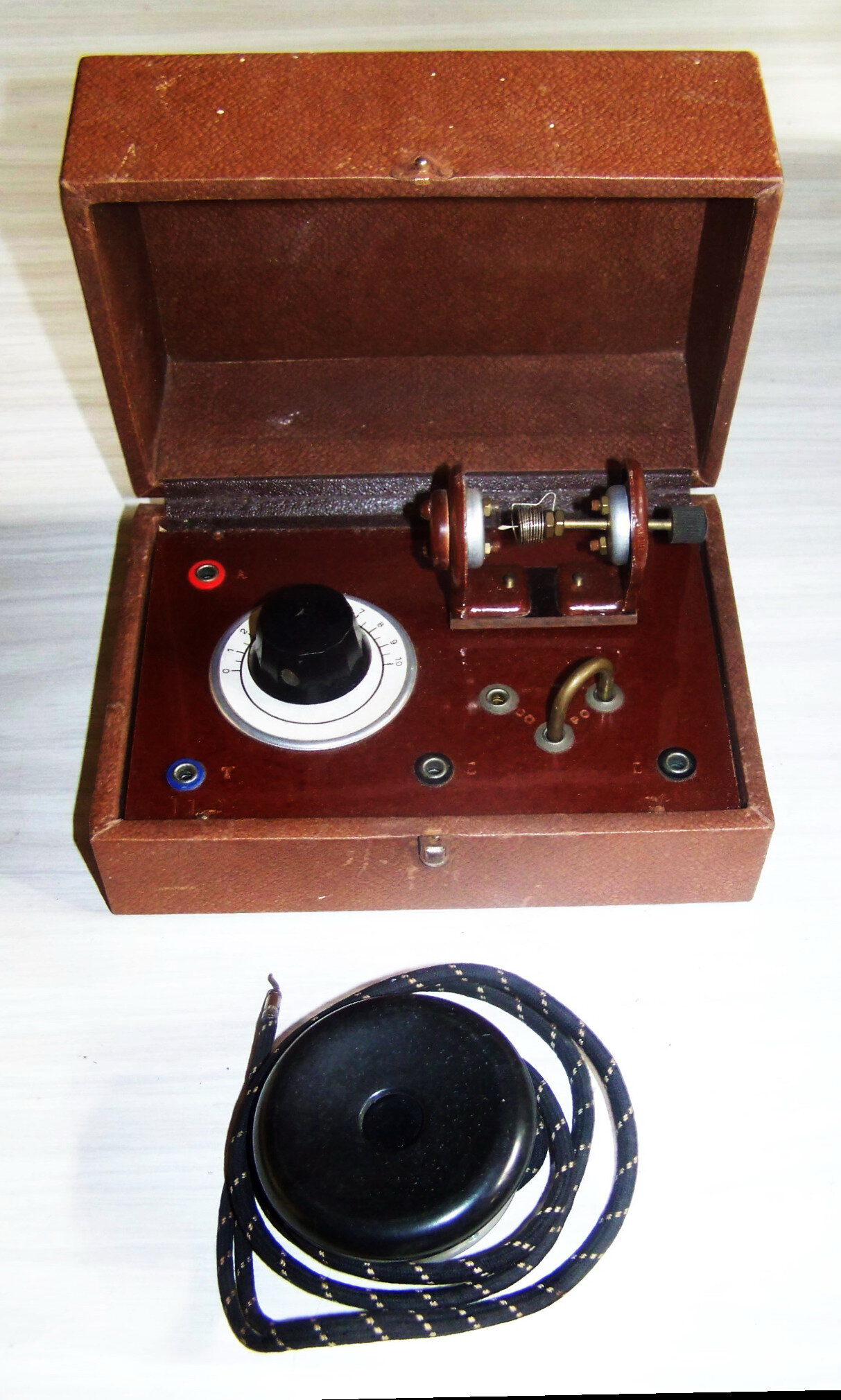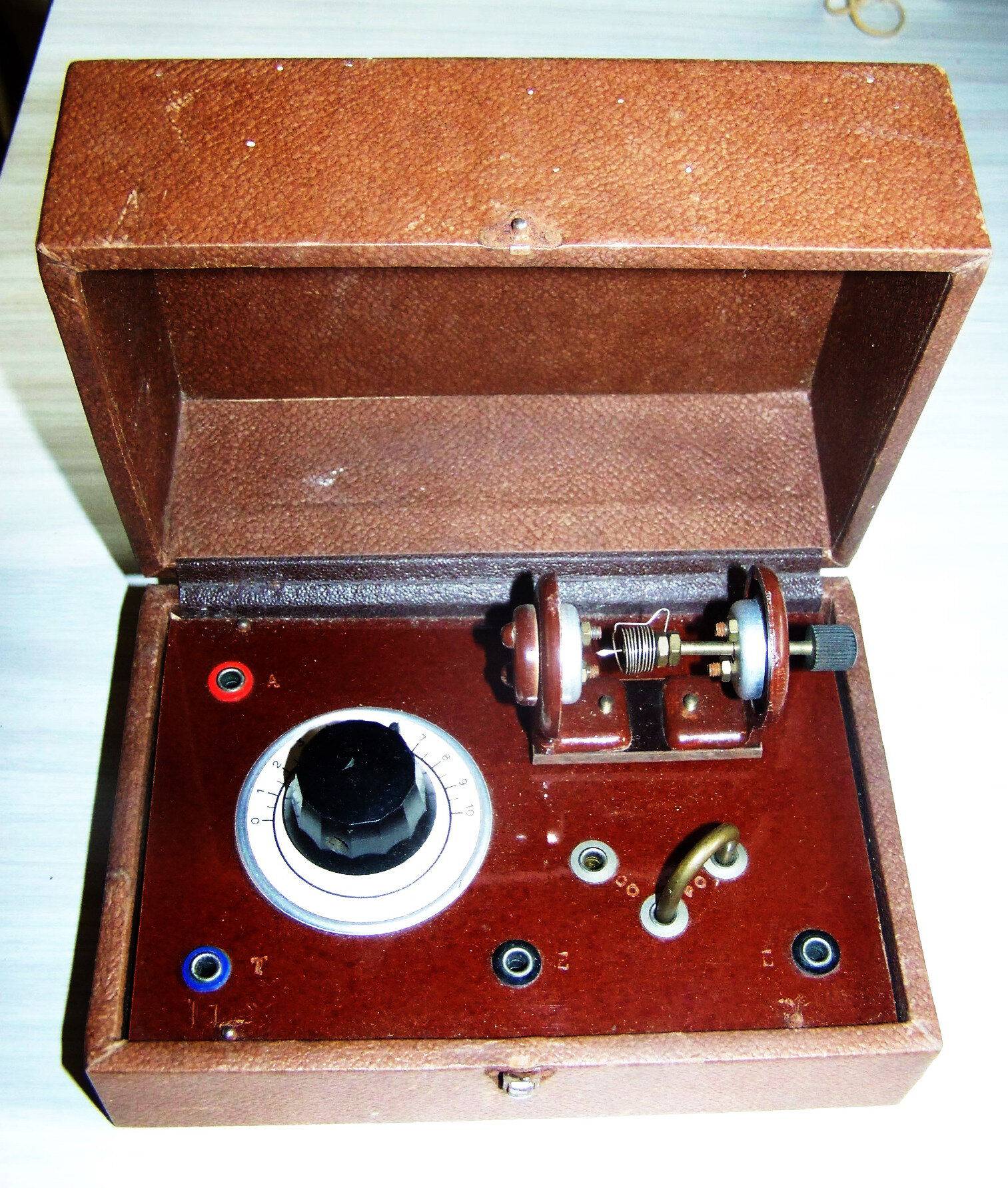 Un coupleur pour 4 piles AA. 2 gros pots en ferrite, 3 transistors, la prise jack, 3 potars montés en résistances variables. Un circuit imprimé fait sur mesures.