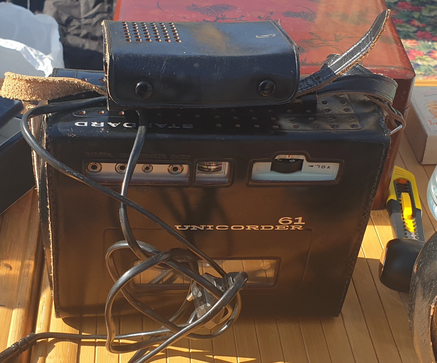Ainsi qu’un magnétophone à lampes Grundig TK 74 de luxe h pour 10 euros également, celui-ci aura besoin d’une légère révision électronique car volume sonore à fond la reproduction est très faible il faut coller l’oreille à la grille du hp pour entendre quelque chose.