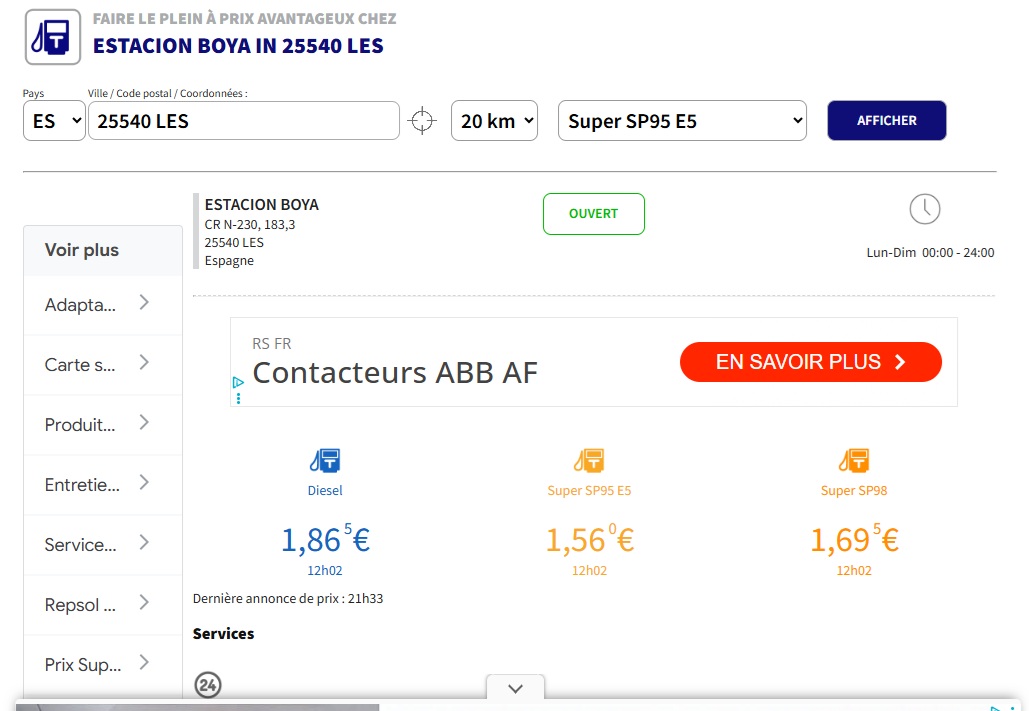 Les tarifs Gasoil et essence à la station la plus proche de chez moi.