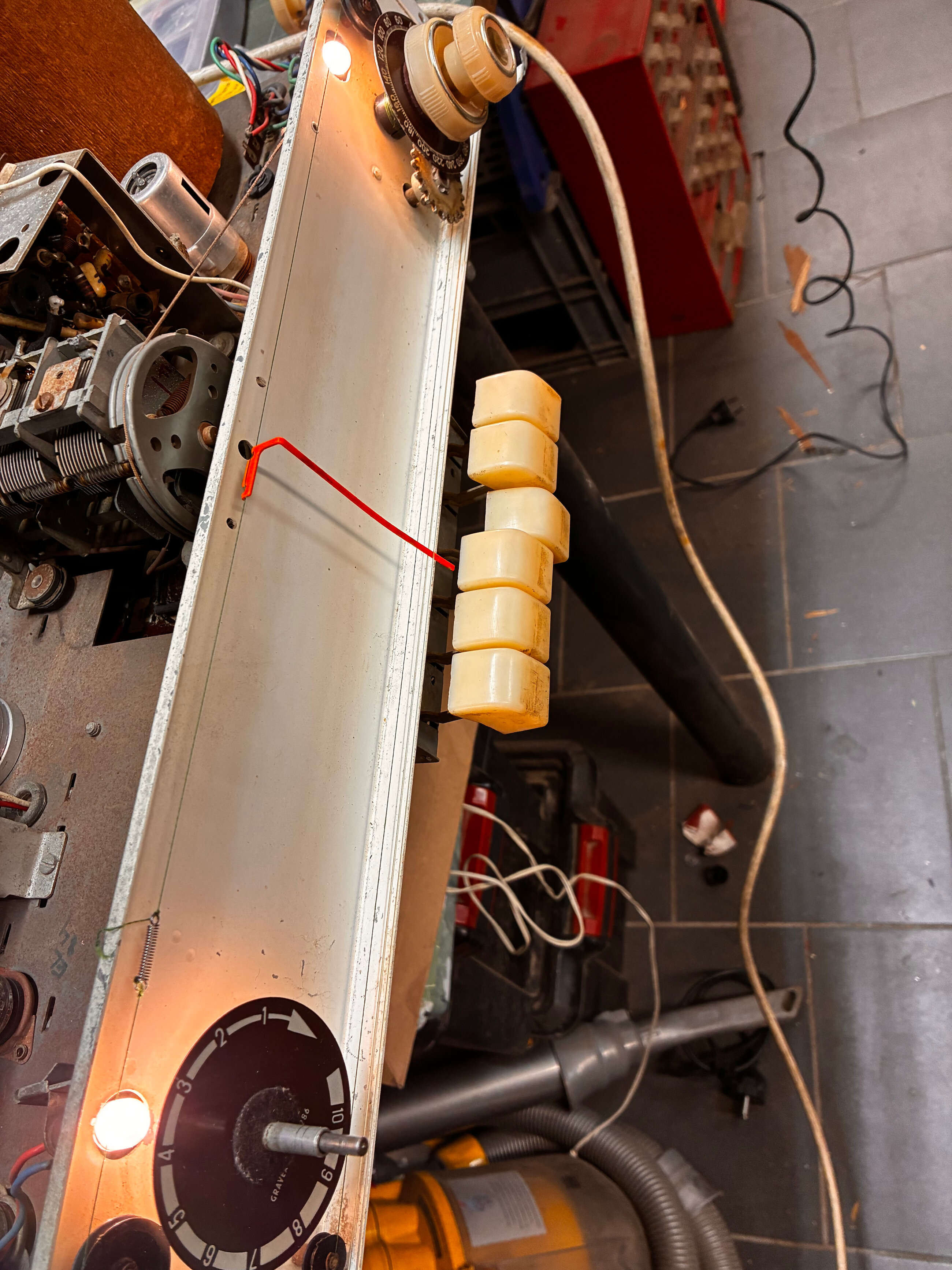 Bonjour , merci pour les précieux conseils , les résistances que j’ai acheté ont une tolérance de 1% , c’est peut être juste . Par contre, j’ai trouvé un condensateur de 0,1 uF qui a lâché devant moi, en attendant l’arrivée de composants avec la bonne valeur, j’ai bricolé un assemblage de condensateurs pour avoir la bonne valeur , cela tient depuis une heure . Donc peut être que le fautif était là , je vais continuer mes investigations. Encore deux petites questions : 1-mon œil magique est plutôt en berne … quelque soit l’ajustage de la fréquence il reste désespérément avec une petite lumière , lampe HS ? 2-la cordelette qui tient l’aiguille est cassée pour éviter un mauvais passage , existe il un plan , des clichés qui pourraient m’aider ? Bon dimanche à tous