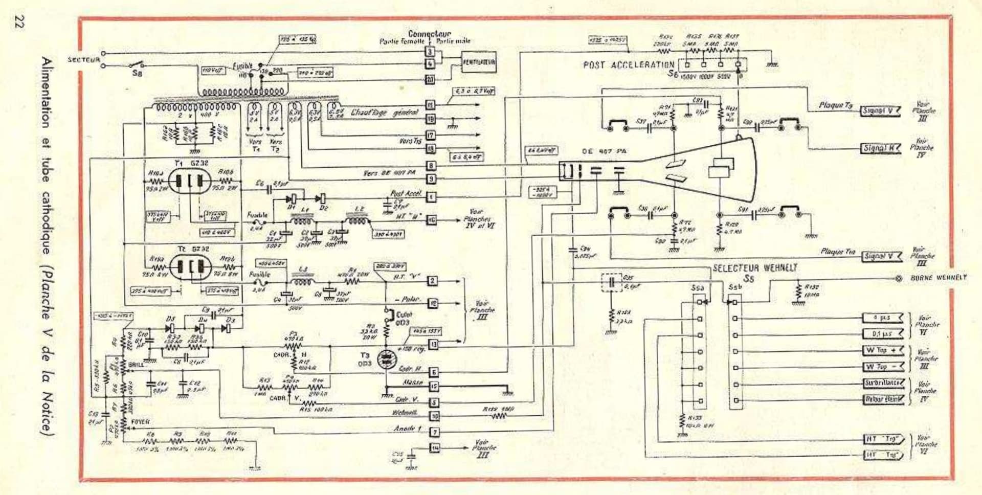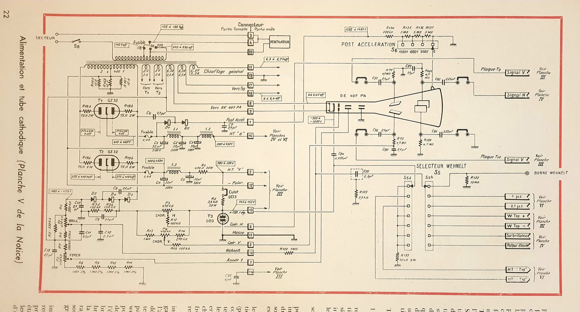 Voici une meilleure photo du schéma de la partie alimentation et tube cathodique.