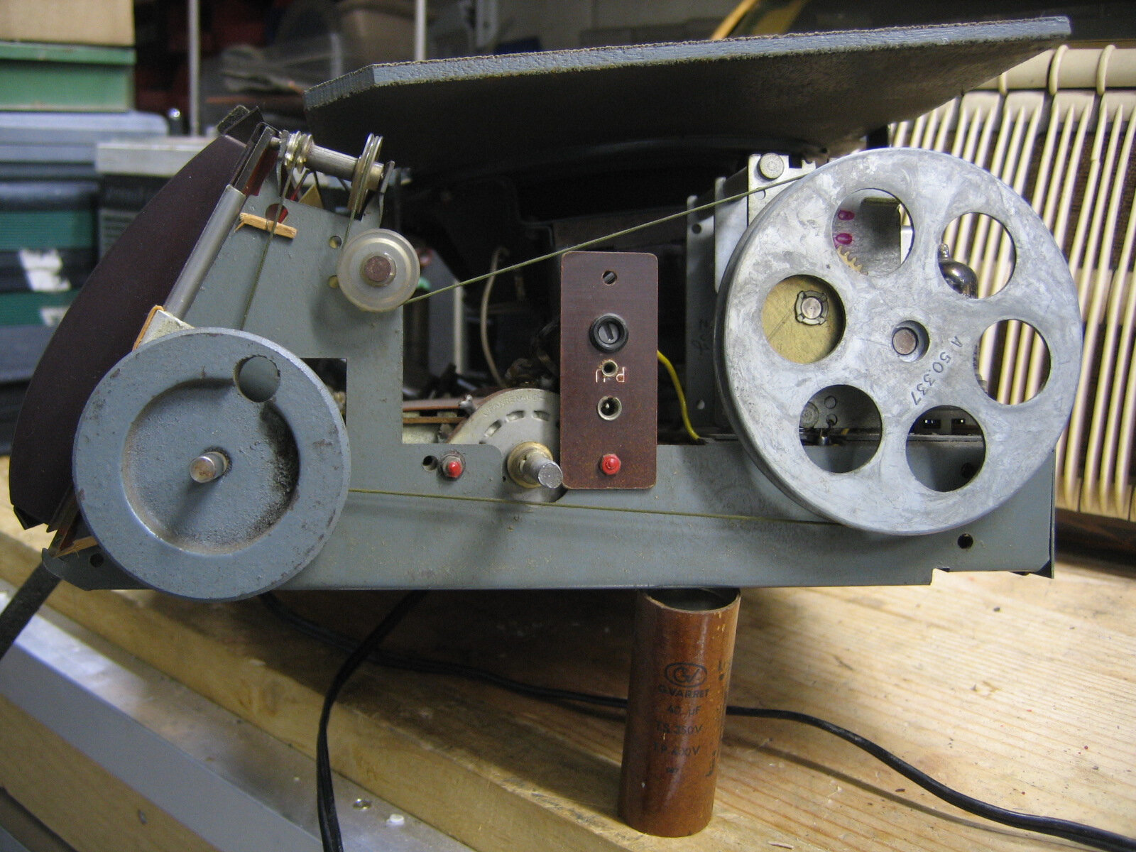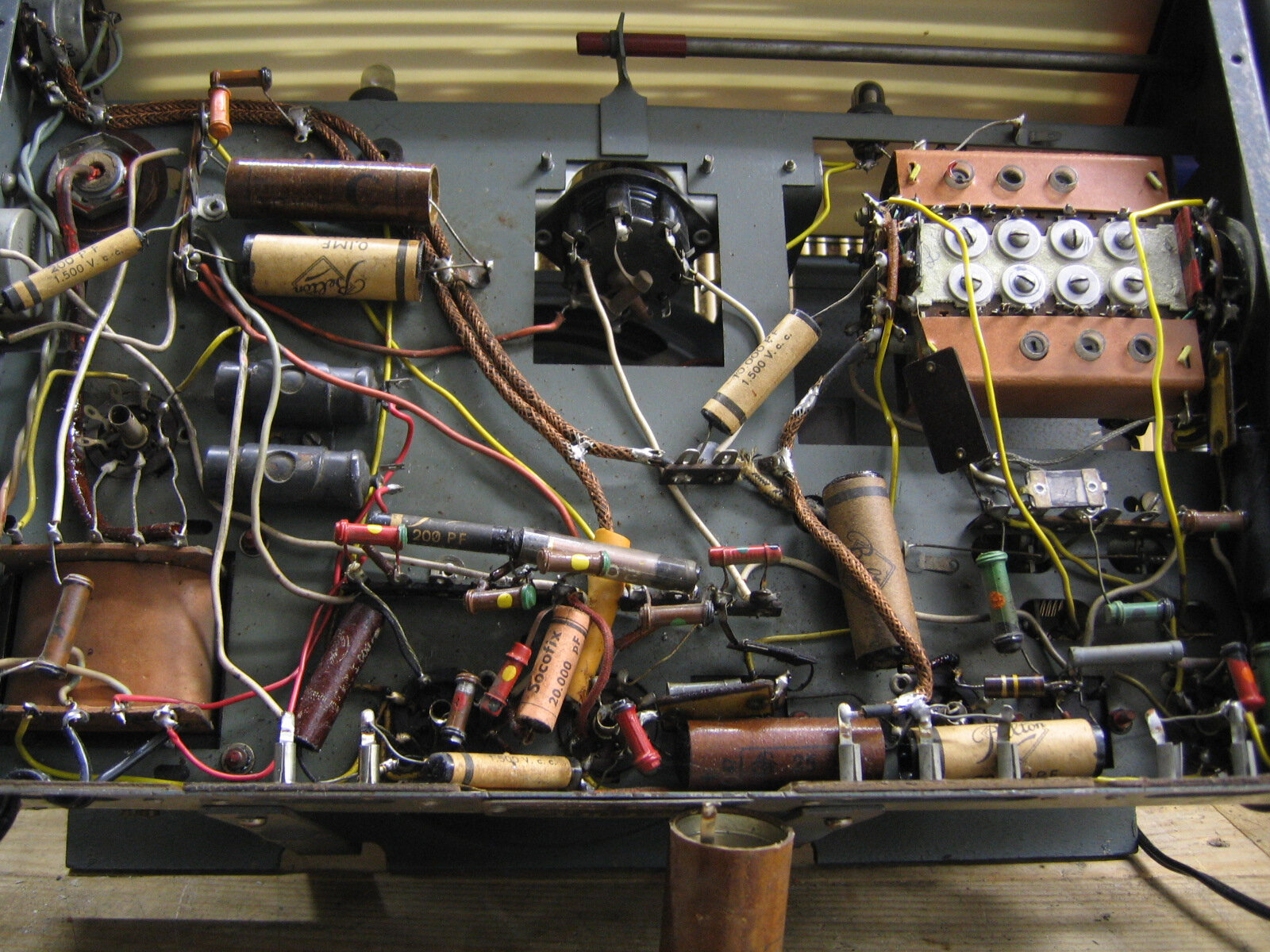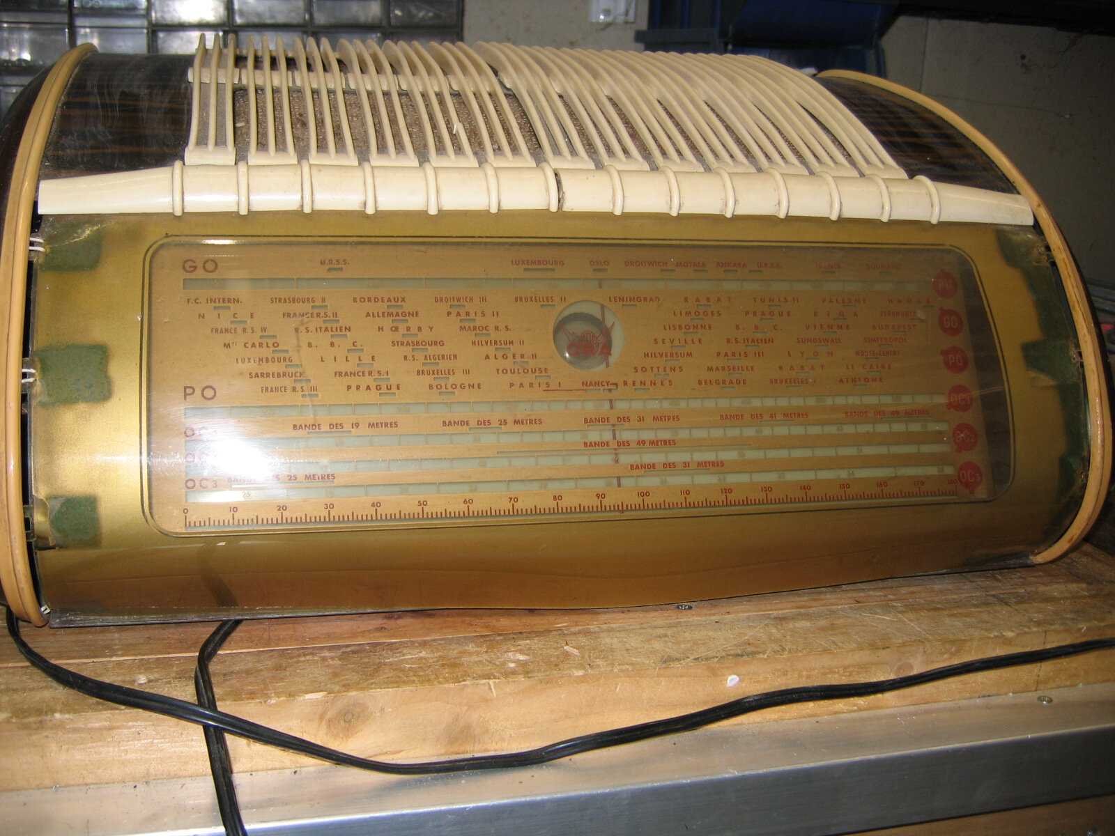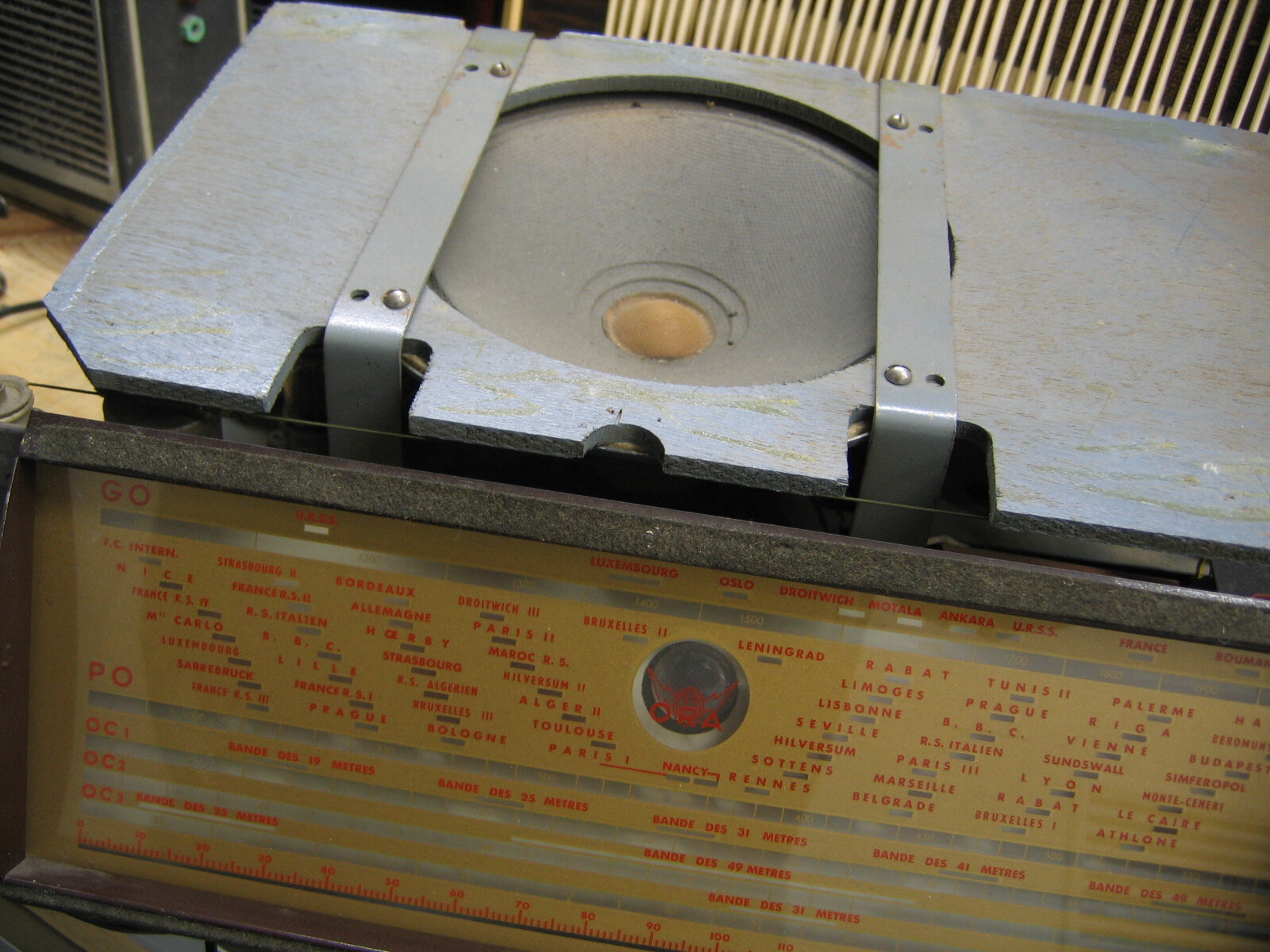 Pendant qu’il était sur la table d’opération, je lui ai ouvert le ventre. Dommage, pour la partie transparente du cadran, car le reste, n’est pas mal fait du tout, avec un châssis très bien étudié. La recherche des stations, doit être un plaisir avec la bonne démultiplication et le volant d’inertie. De part les gammes du bloc qui l’équipe, il peut encore bien se tenir. Je vais mettre quelques photos de ce châssis, ici, et sur le GL puisque jusqu’à présent il y était inconnu et je n’aurai plus qu’a le mettre dans la file d’attente pour la remise en marche !