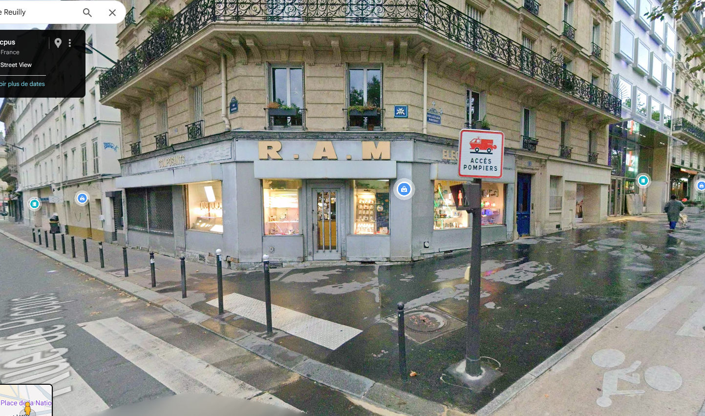 J’ai retrouvé le magasin Cibot grâce à Google Street View (1-3 rue De Reuilly)