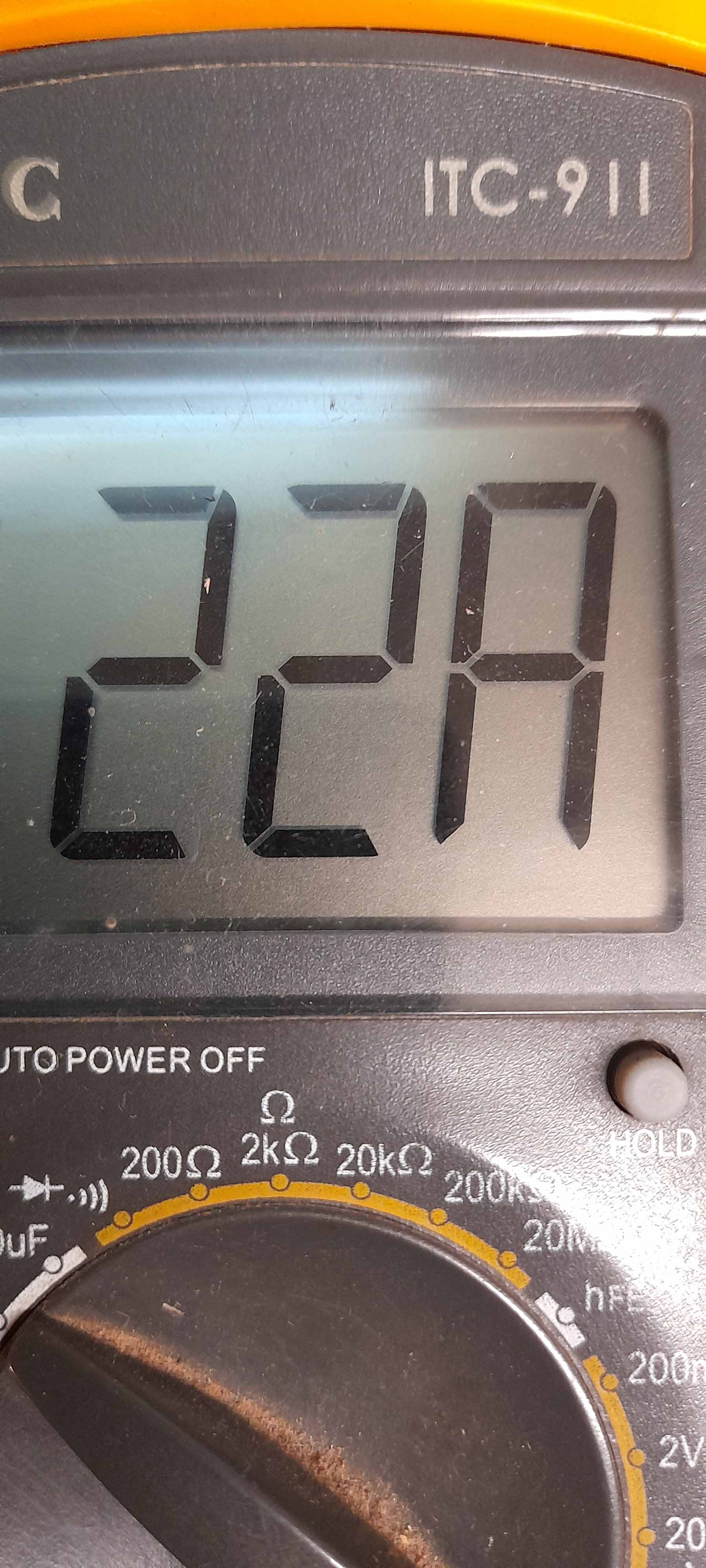 Entre-temps mon multimètre a perdu un secteur d’affichage et j’ai perdu 2 Volts de tension secteur.