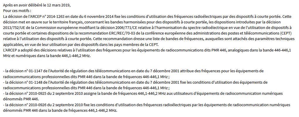 au départ, ça a été instauré en France par l’ANFR et l’ARCEP pour les professionnels pour communiquer à courte distance sans payer de taxe radioélectrique, comme les grutiers, chantiers, salons, etc…