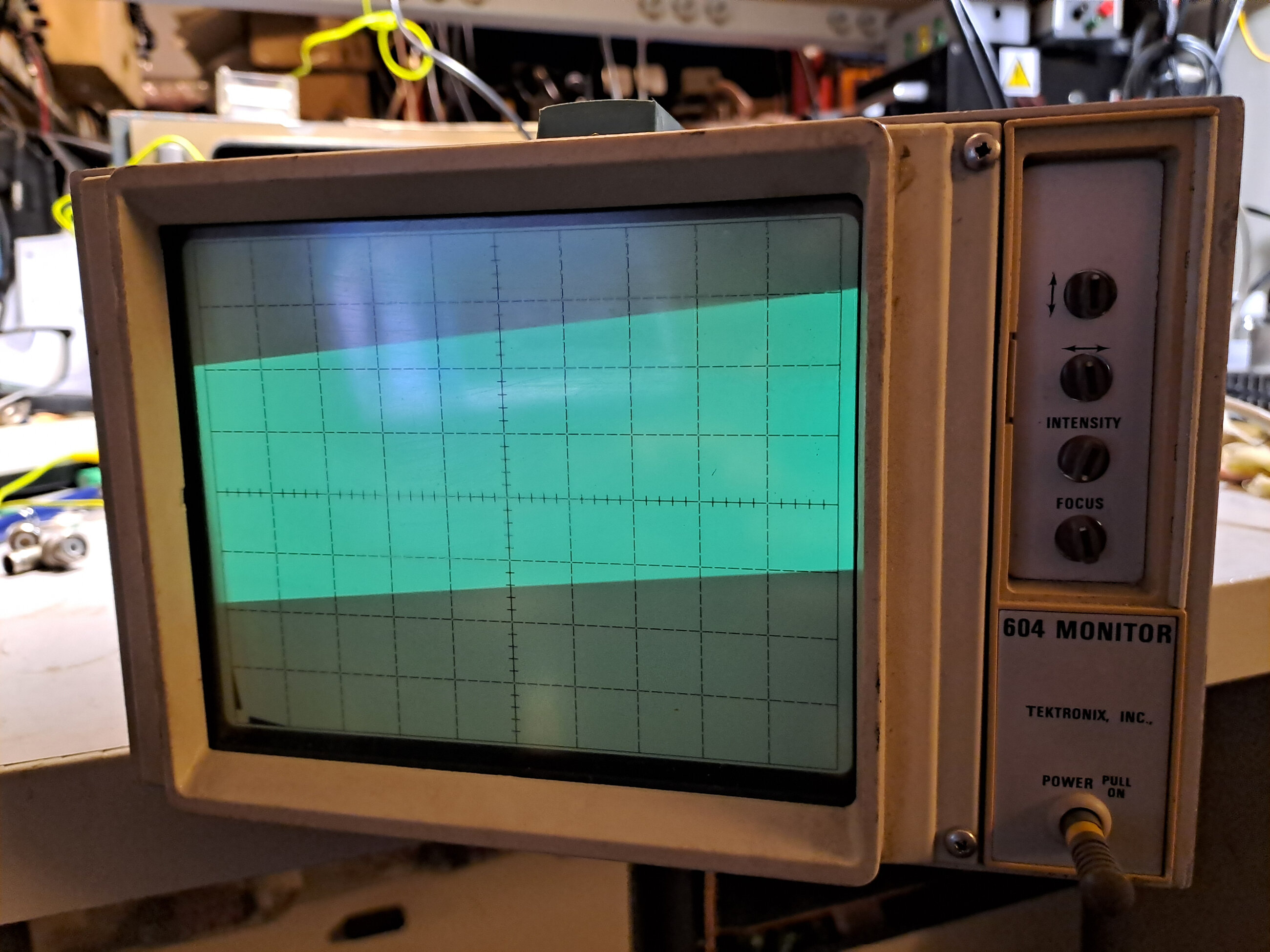 Bonjour, J’ai récupéré dernièrement un moniteur XY tektronix 604. Après un bon nettoyage, il fonctionne.