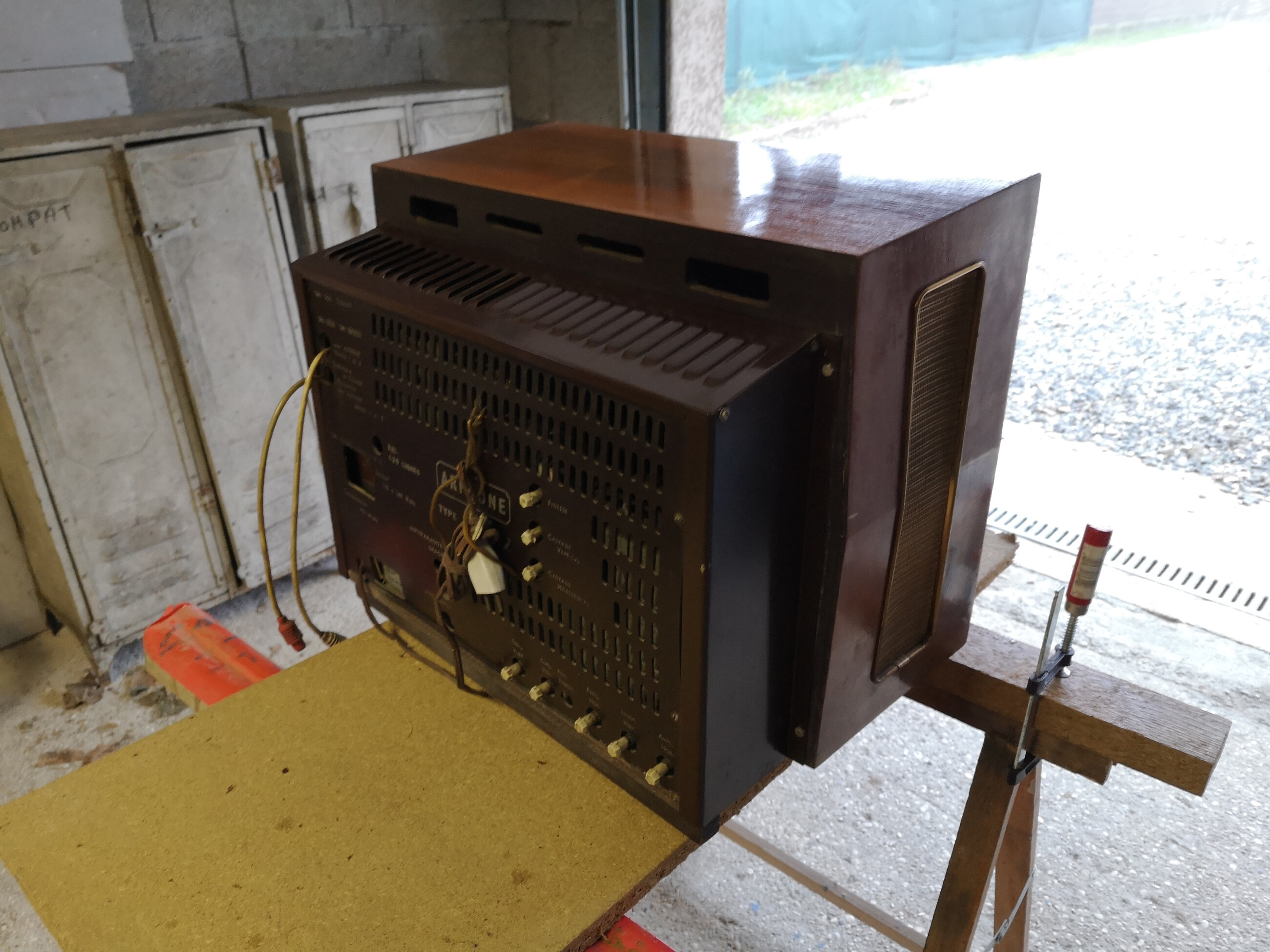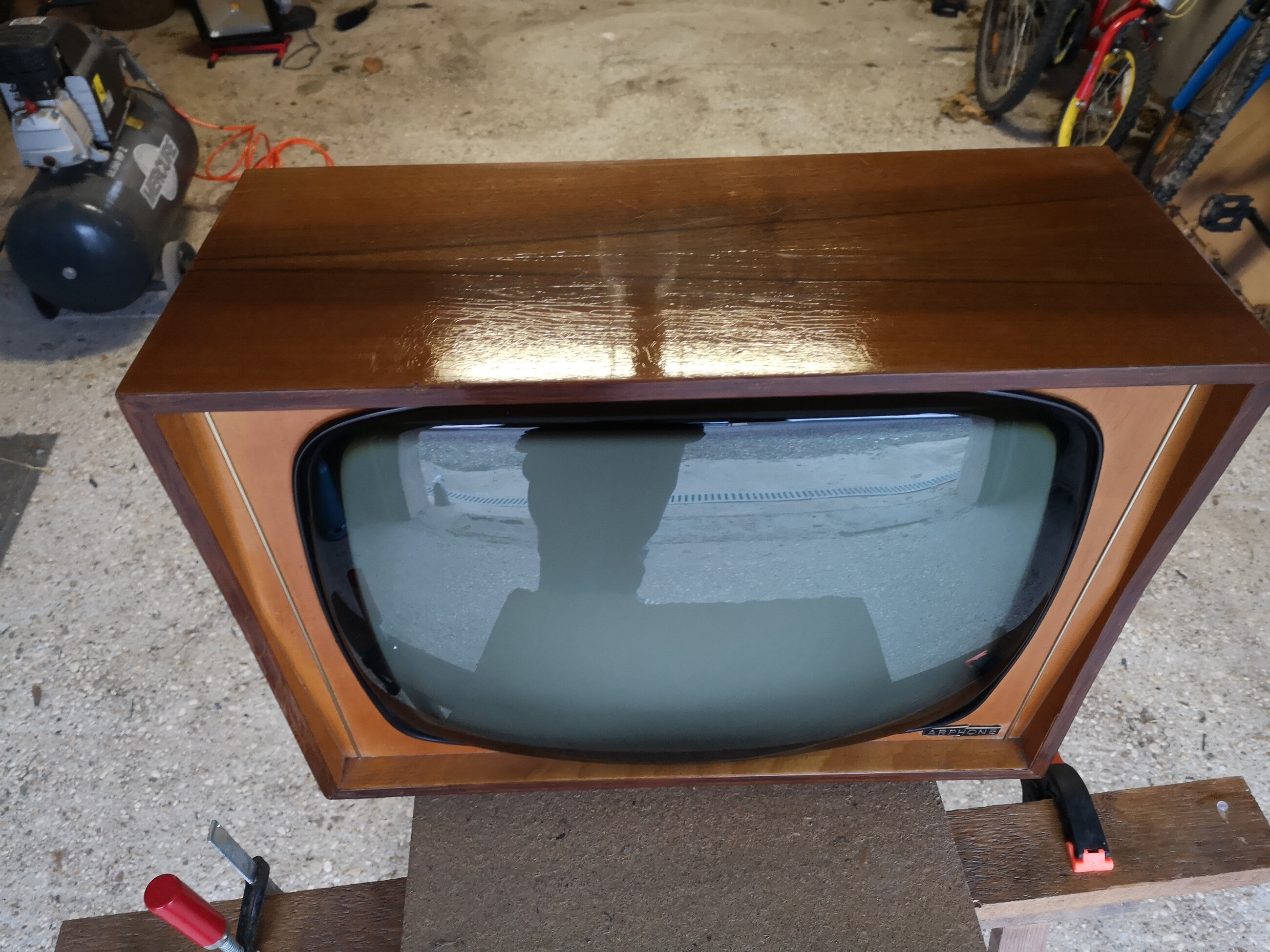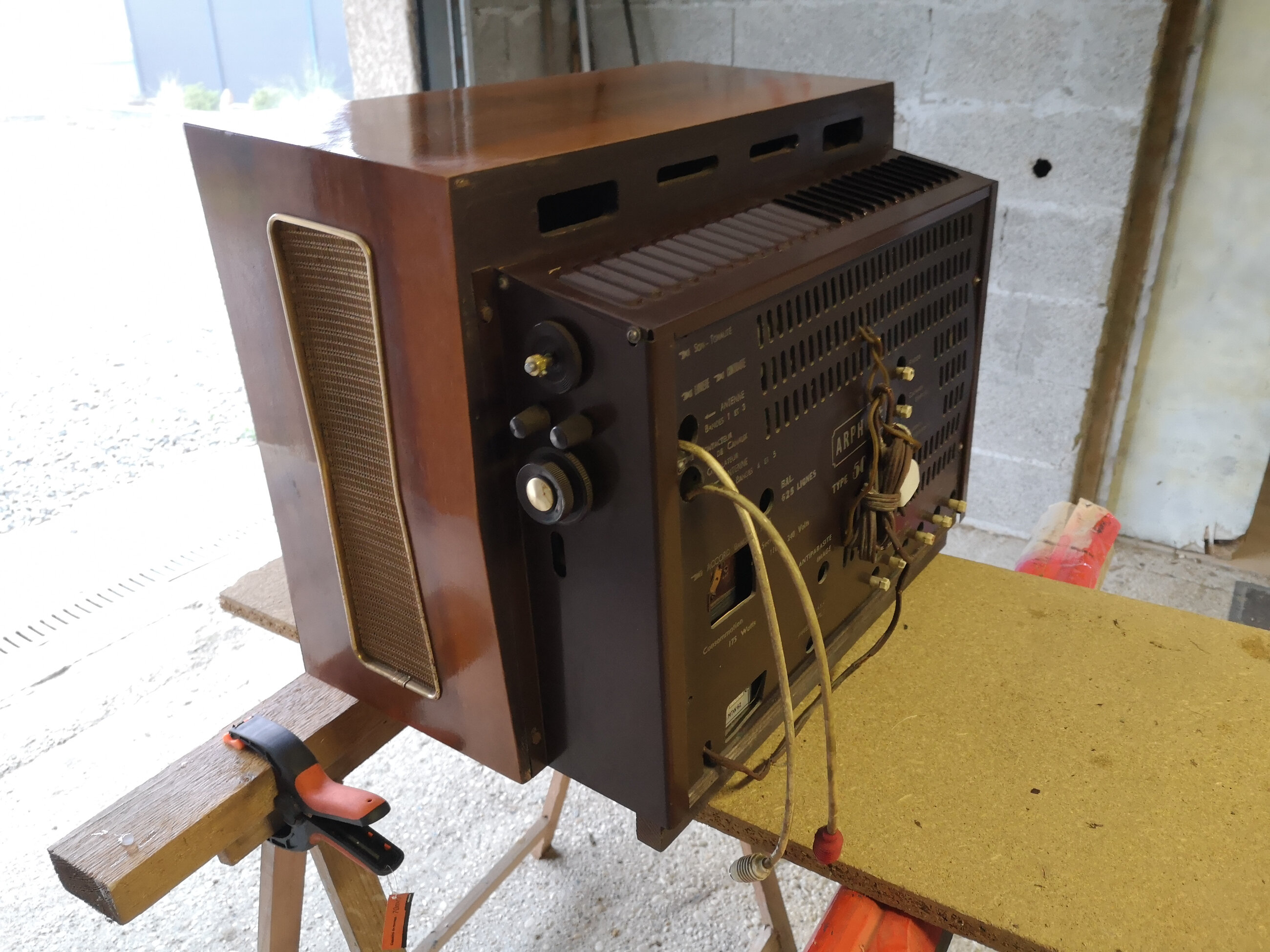 Les collectionneurs de TV ne sont pas très nombreux et ce n’est pas un poste vraiment recherché. En agrandissant les photos, on remarque toutefois que le vernis est pas mal craquelé. Cependant c’est un modèle de forme galbée concave assez atypique et je dirais qu’une cinquantaine d’ Euros est une valeur " standard" raisonnable.