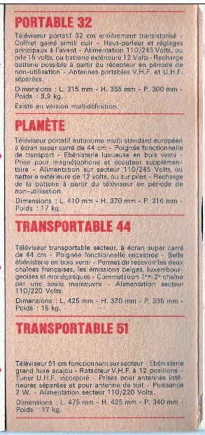 Pour ce qui est de Télémaster / Arphone / Amplix, ils n’ont pas fait de TV portables à ma connaissance, Tevea non plus.
