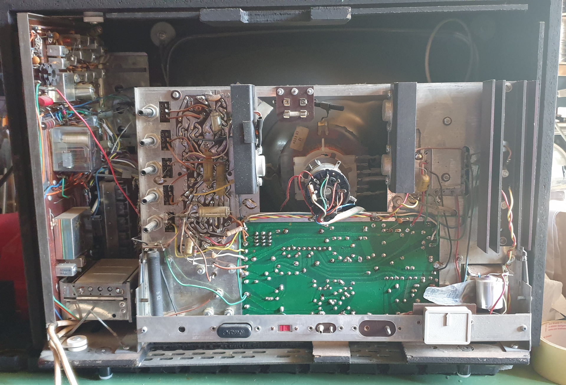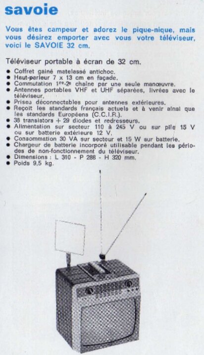 J’ai récupéré il y a bientôt 40 ans ce téléviseur portable avec tube de 44 cm, entièrement transistorisé, d’origine française (ou belge), que je trouvais sympathique et qui allait partir à la benne faute de schéma pour le réparer :