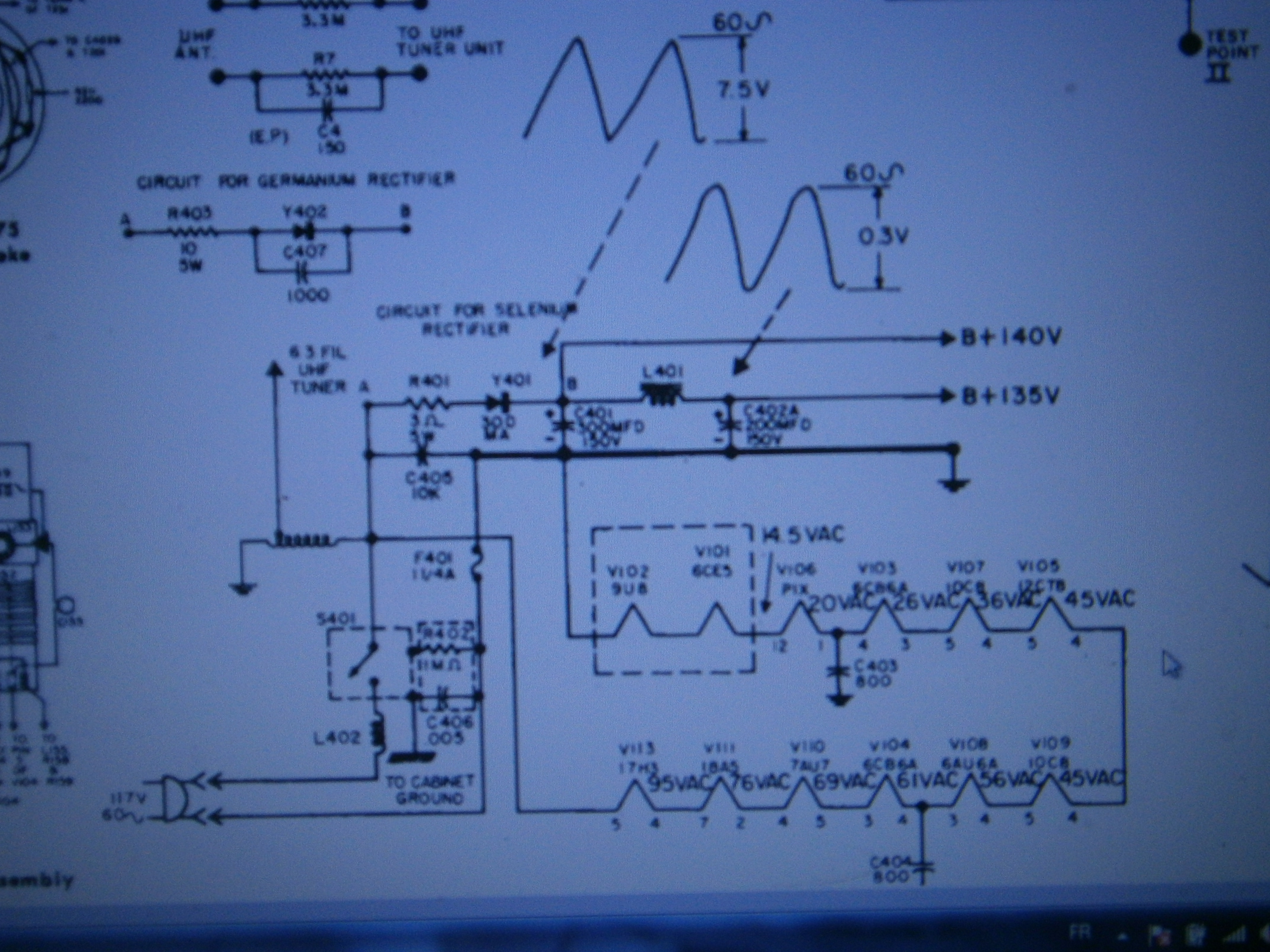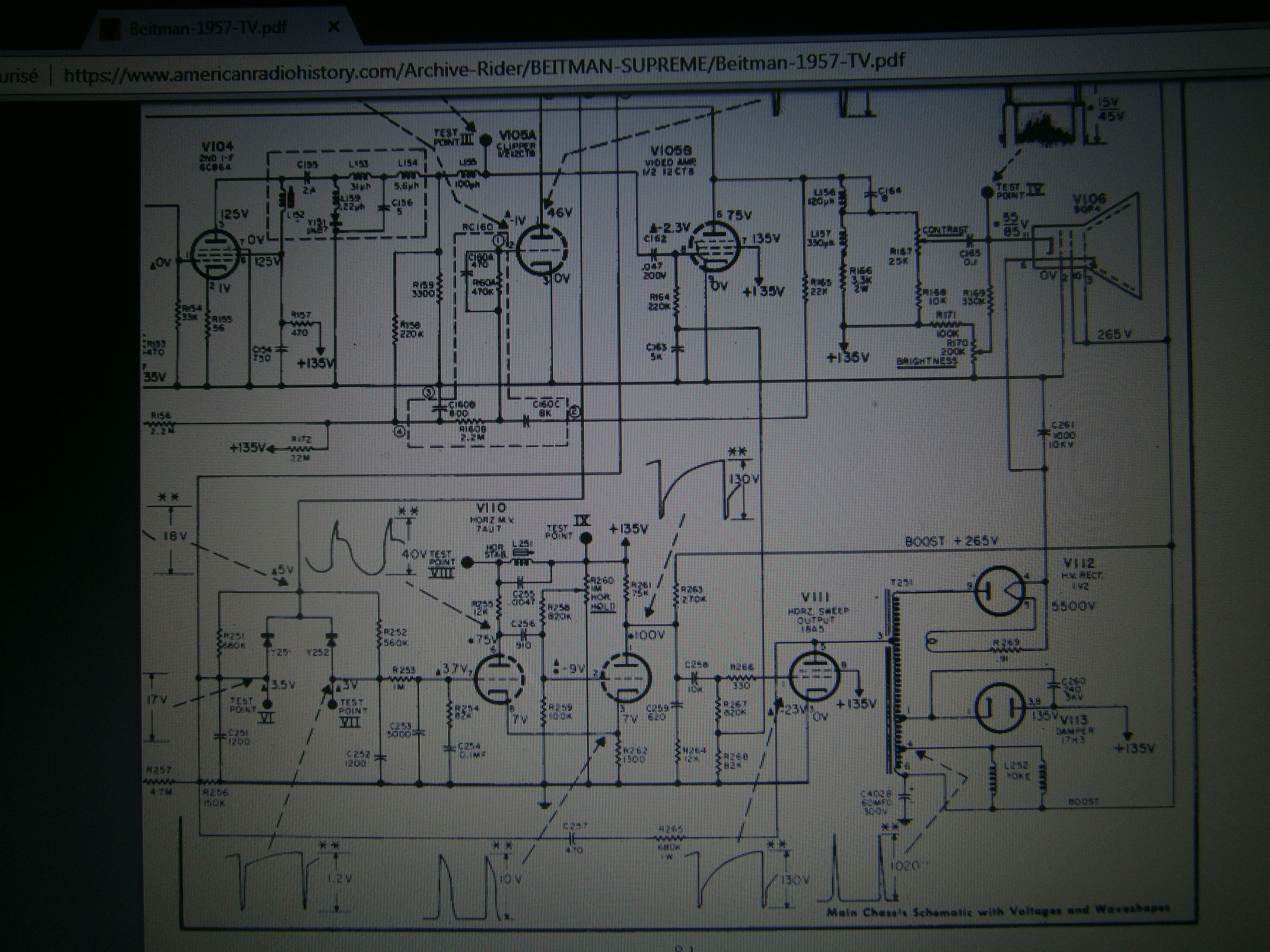 Il faudrait trouver la doc du tube pour avoir la valeur exacte a moins que ce ne soit indique dans la doc de Tournesol qui semble plus complete que la votre ( je n’arrive pas a lire le N° du tube cathodique)