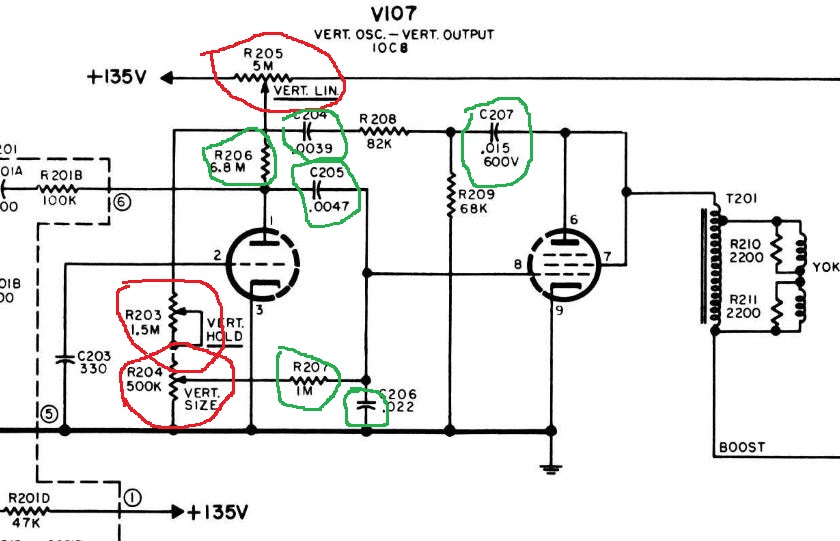 verifiez les composants cercles en vert surtout la 6.8Mohms et C205 gare a ses fuites en HT