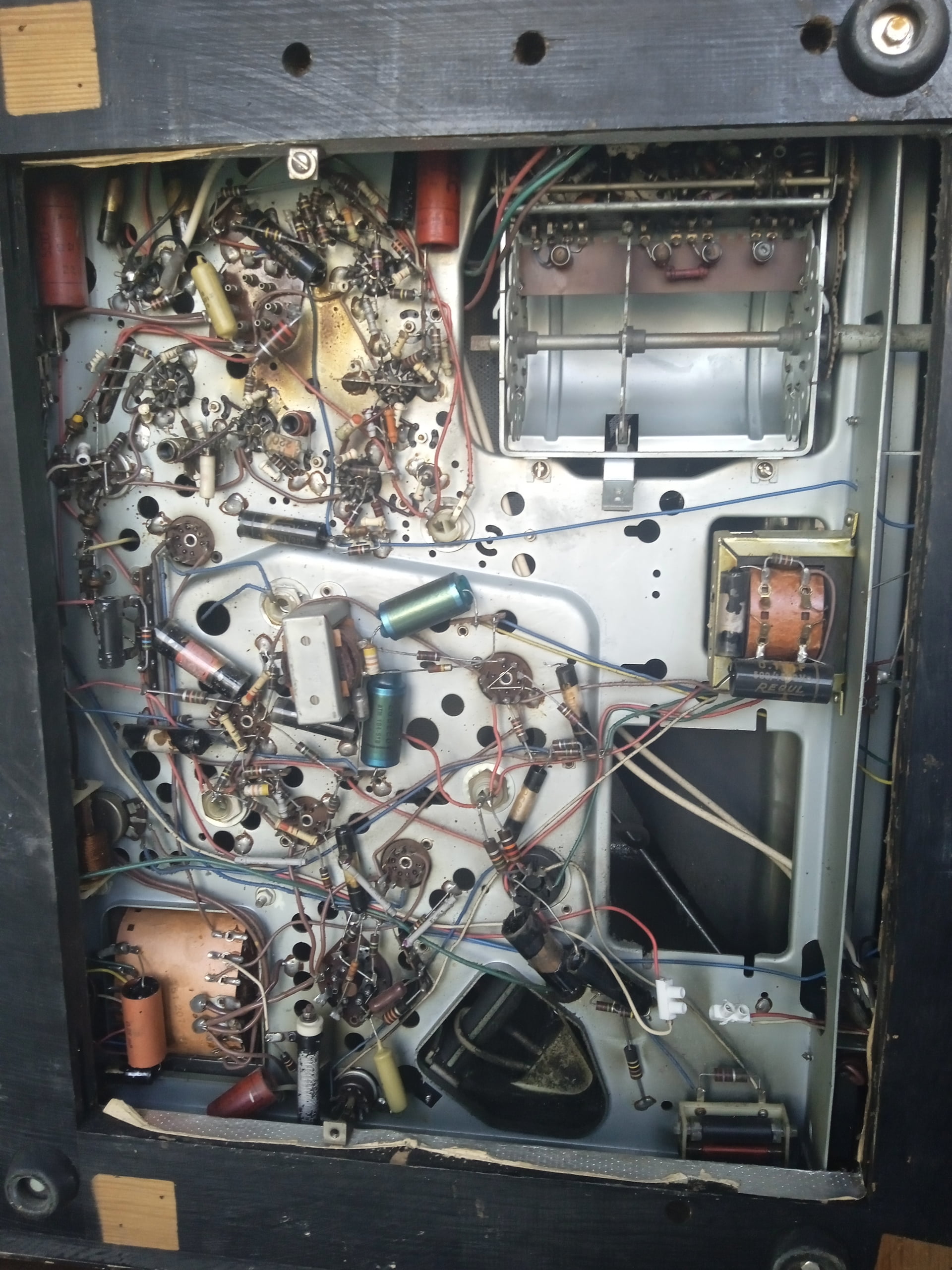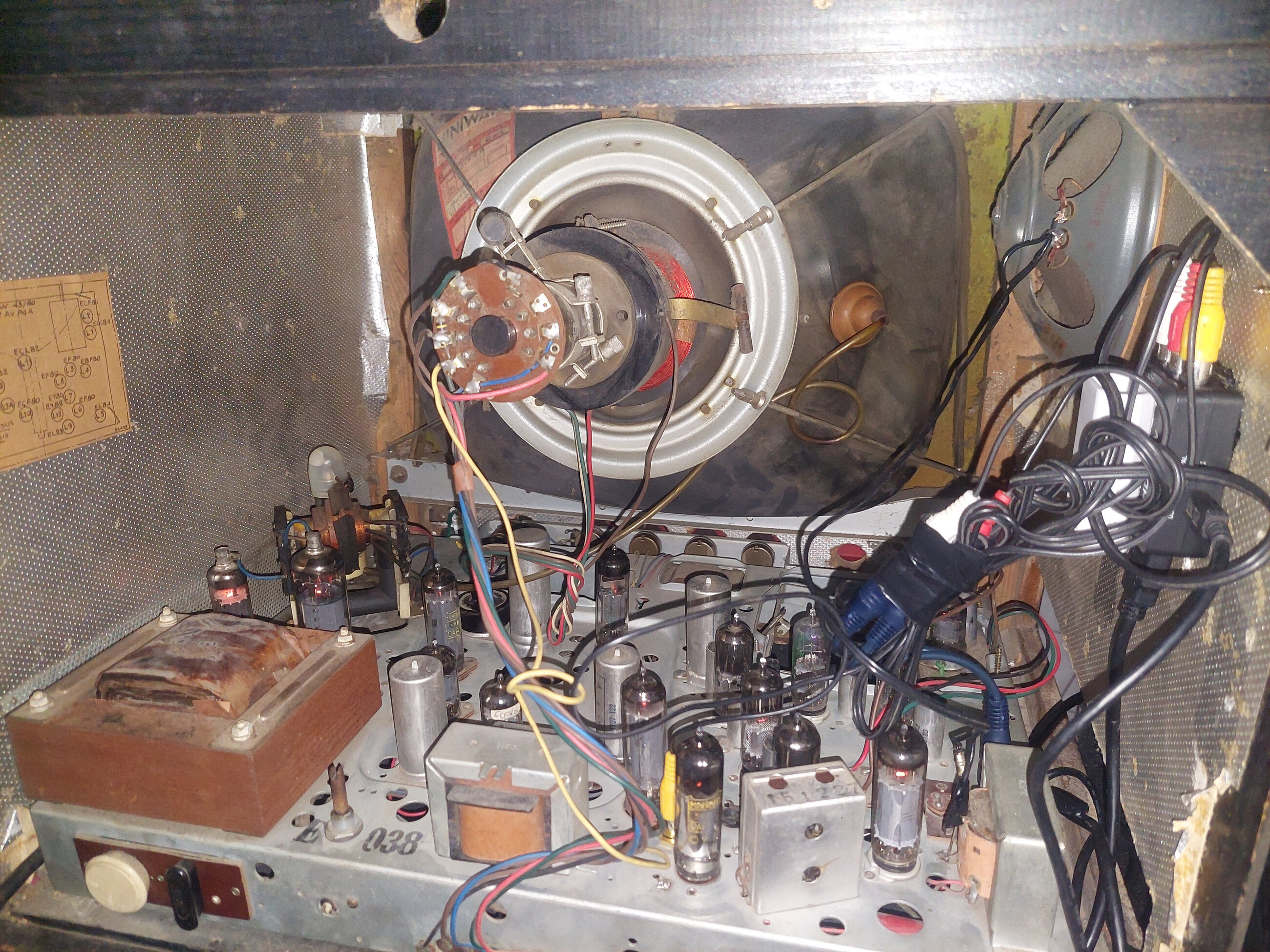 Bonjour à tous après deux ans désolé pour le tempsUne restauration lente du Du téléviseur pathe marconi t 1038 Restaurer avec des composants chinois Qui font plus tôt leur job Le signal vidéo injecté sur la grille de la el 183 et l’audio injectée sur la grille de l’el 84 voici quelques images