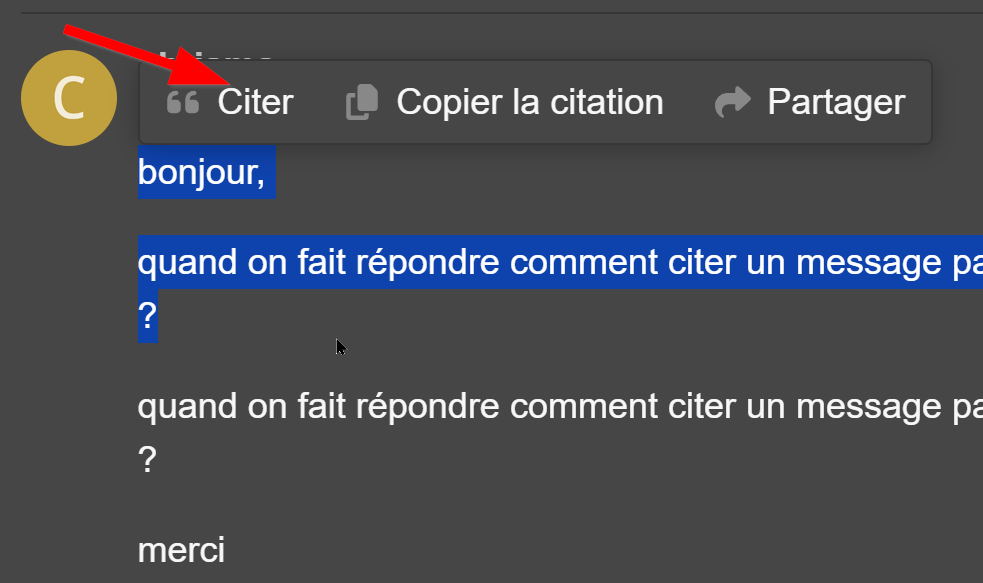 soit directement comme j’ai fais là en début en cliquant directement ‹ citer ›
