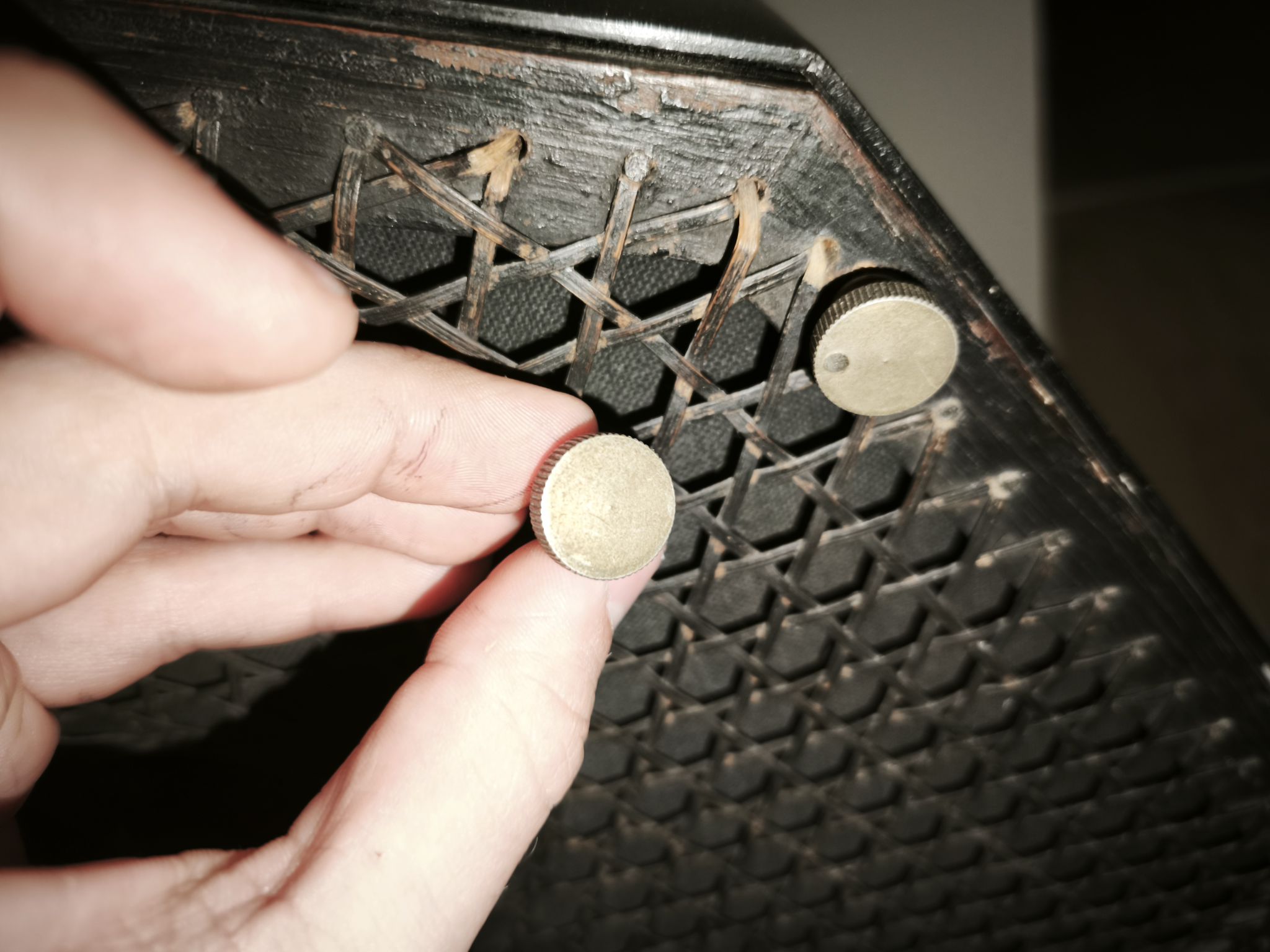 Souvent (si ce n’est toujours), la toile des haut-parleurs cités ci-dessus est absente ou non d’origine. Et pour cause : cette toile était très fine et extrêmement fragile !
