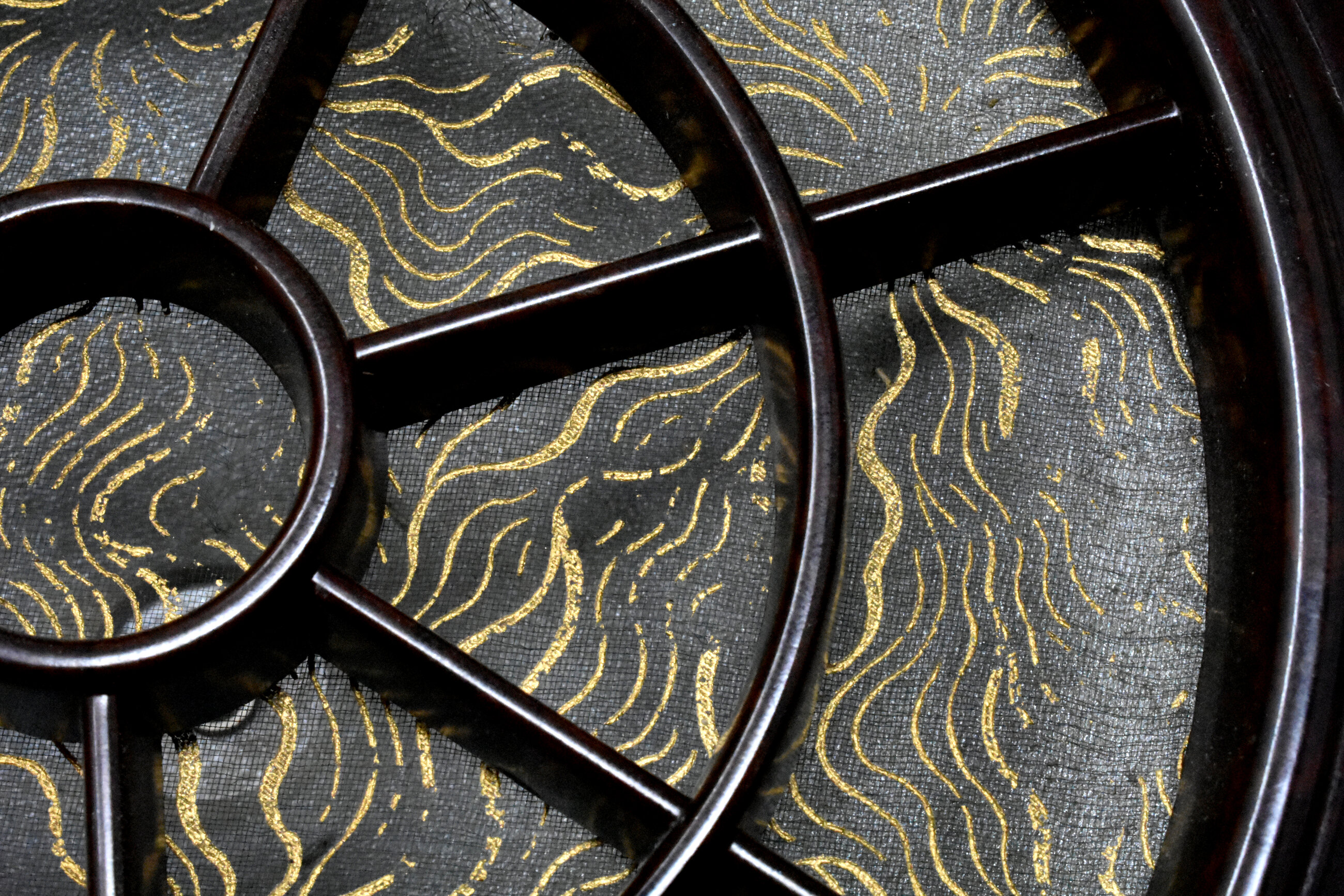 Et celle-là qui n’est pas mal ; un gros plan sur un détail ou on voit bien le dessin en échelle sur les dorures épaisses.