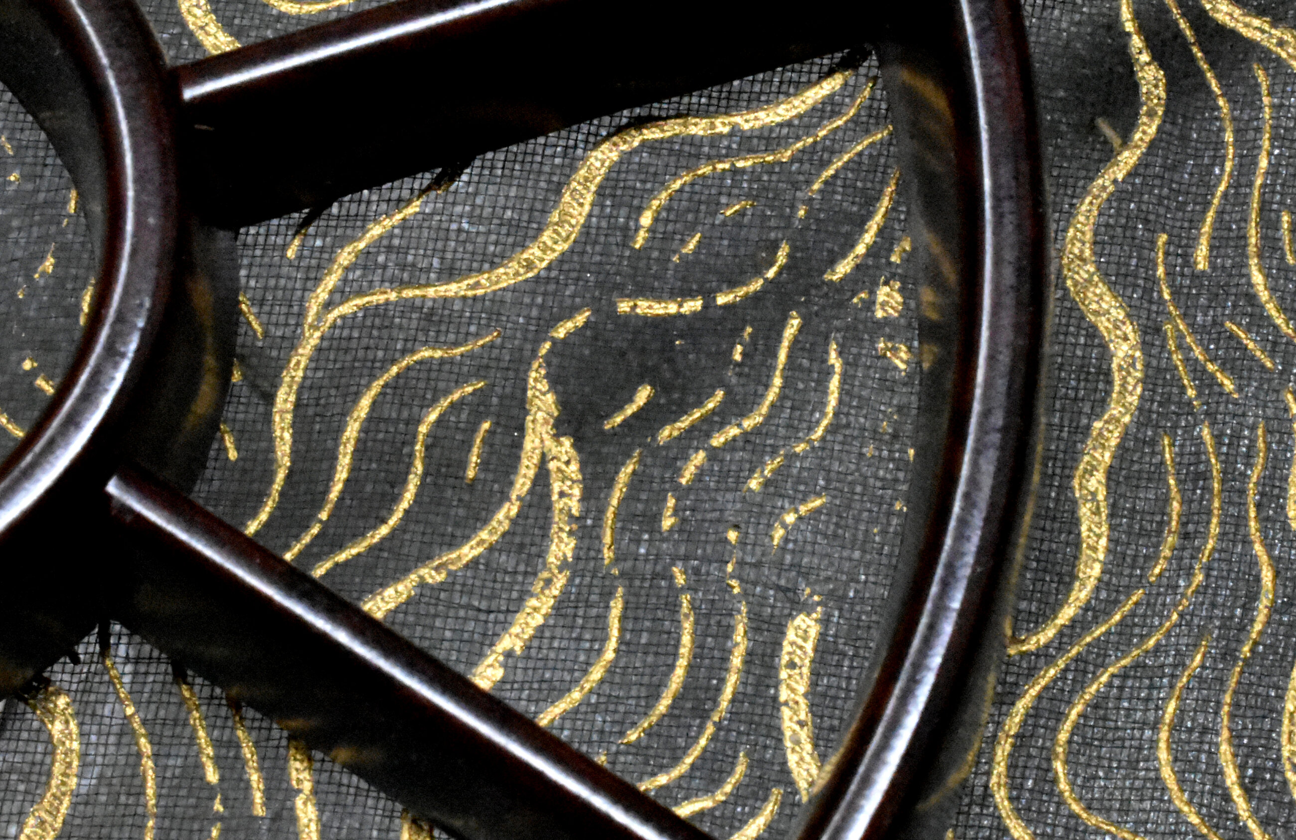 – si l’on vernit uniquement les fausses dorures, le moindre coup de pinceau à côté fera boire le vernis au tissu, et cela se verra immédiatement.