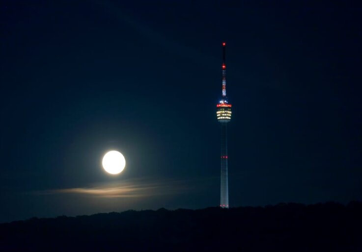 Elle est allumée dès la tombée de la nuit avec des lumières et des effets de couleurs variant sur l’ensemble des sphères et des couleurs au centre de la structure.