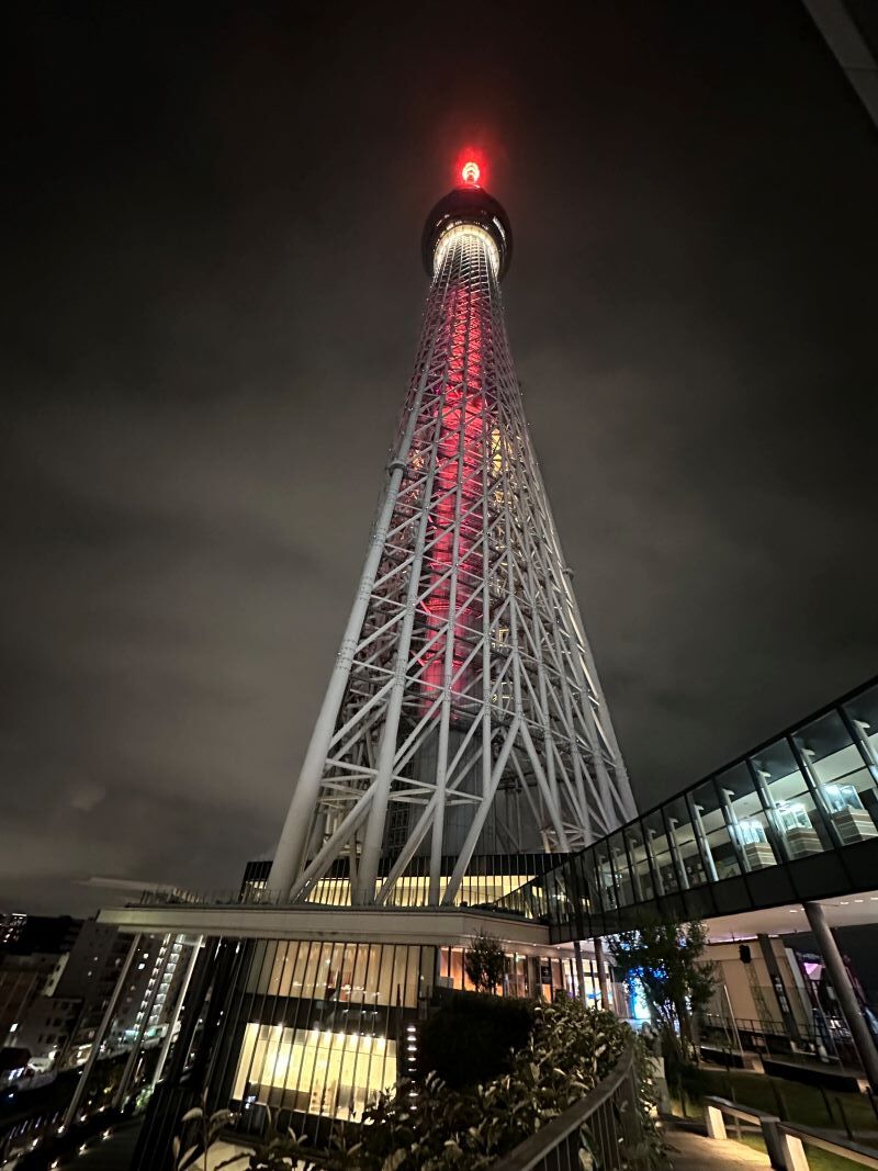 Vue de la ville depuis le restaurant panoramique, la tour illuminée en rouge (et basée sur la conception de la Tour Eiffel) fut la première tour de télévision de la ville : c’est la Tokyo Tower qui date des années 50.