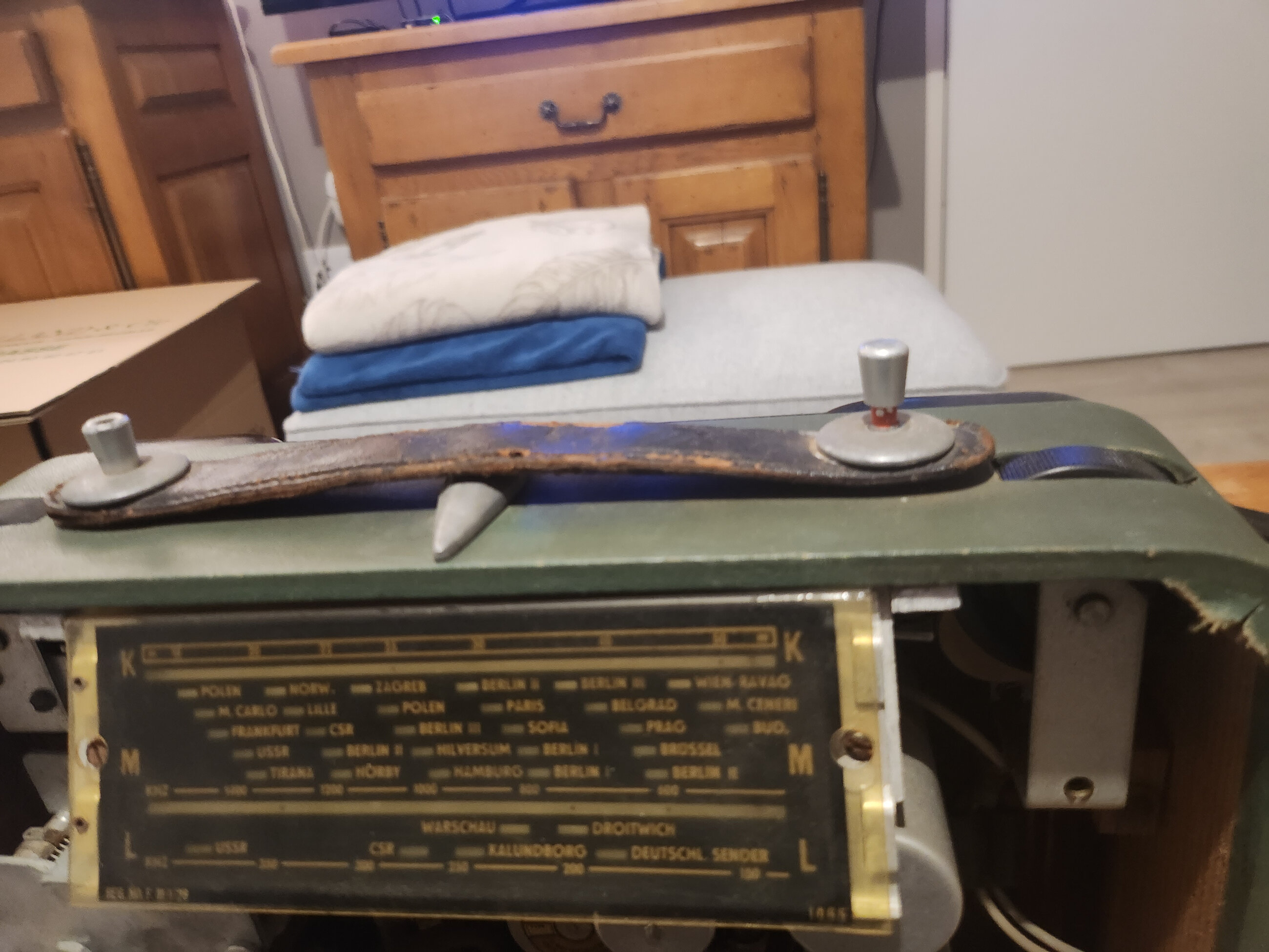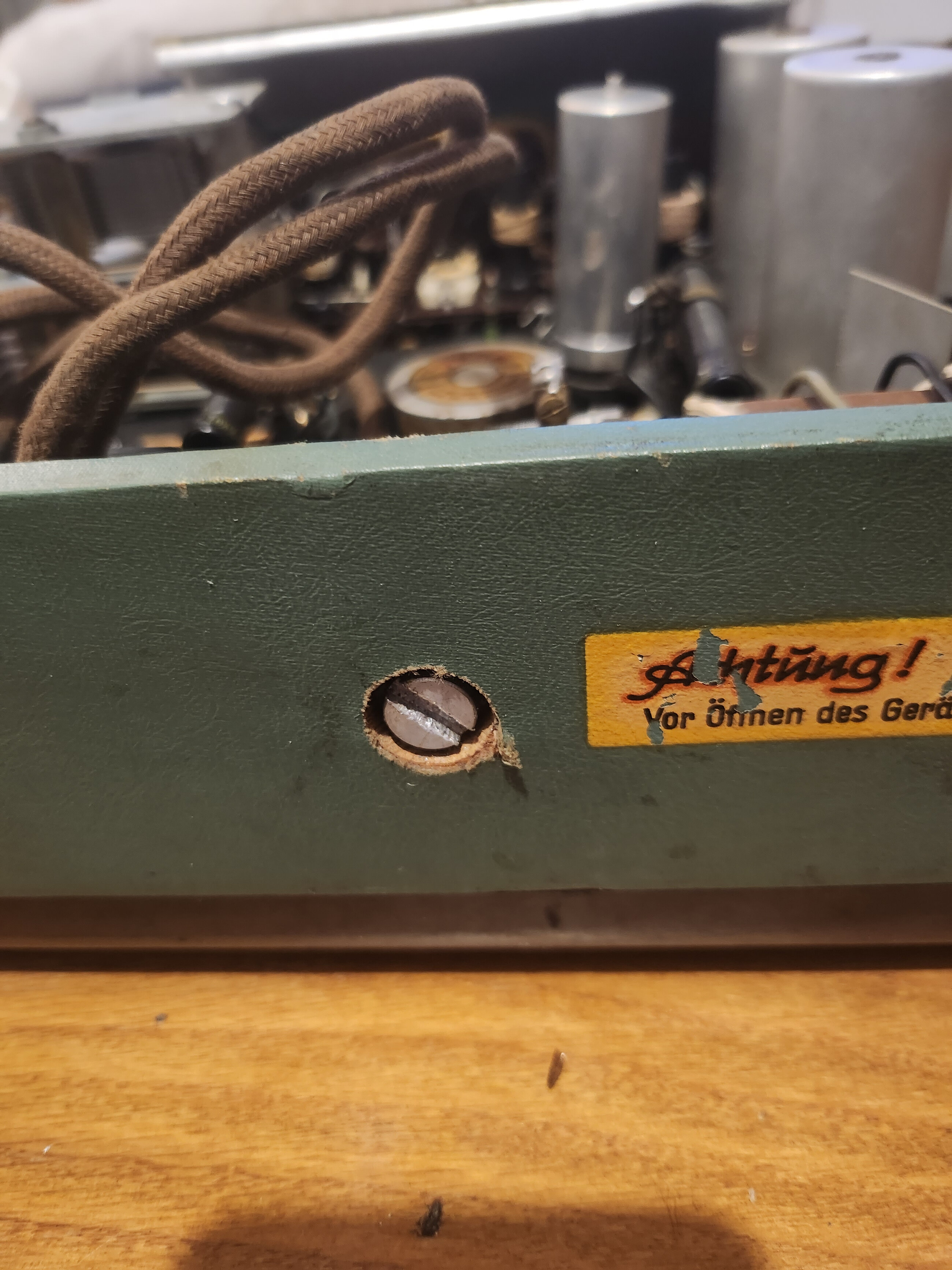 Pour les mollet t’es situées à gauche et à droite celle de gauche commande le CV pour celle de droite je ne vois pas le potentiomètre de volume ! Je vais être obligé de sortir le châssis. Car je n’arrive pas à ouvrir la face avant. Le dos est maintenu par la vis du fond