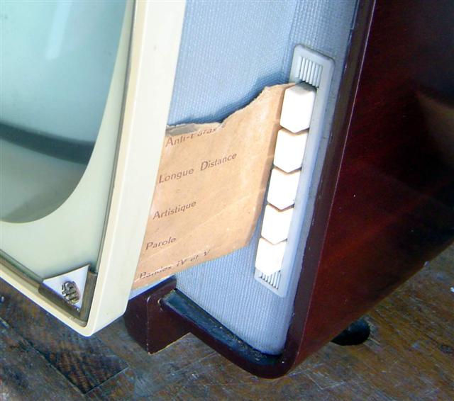 Cet appareil 819 lignes seulement date d’avant la décision d’utiliser le 625 lignes pour la « 2ème chaîne » (ce n’est qu’à partir de 1962 que les TV seront bistandard, avec ou sans tuner UHF d’origine).