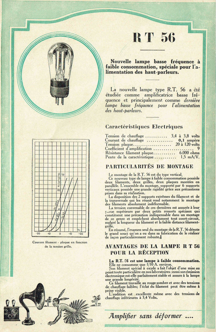 - La RT56 est , aussi, une triode finale BF (a peu près les mêmes remarques que pour la DE5 )