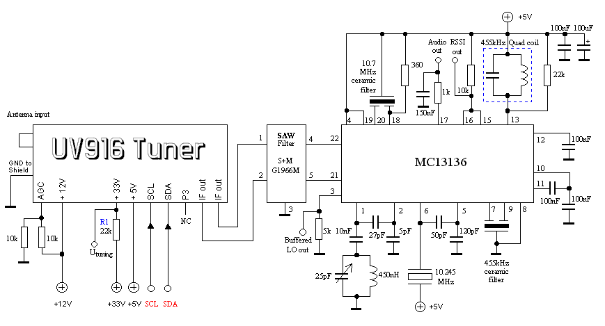 j’ai récupéré sur la même carcasse un ba6161 , c’est un géné de tension 33V idéal pour la varicap : il m’a suffit de mettre un potar en sortie, et je peux commander la tension « tune »