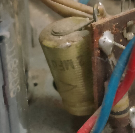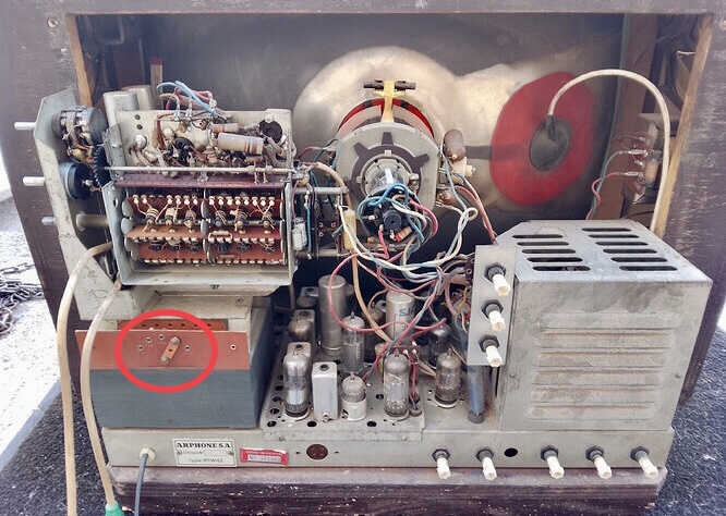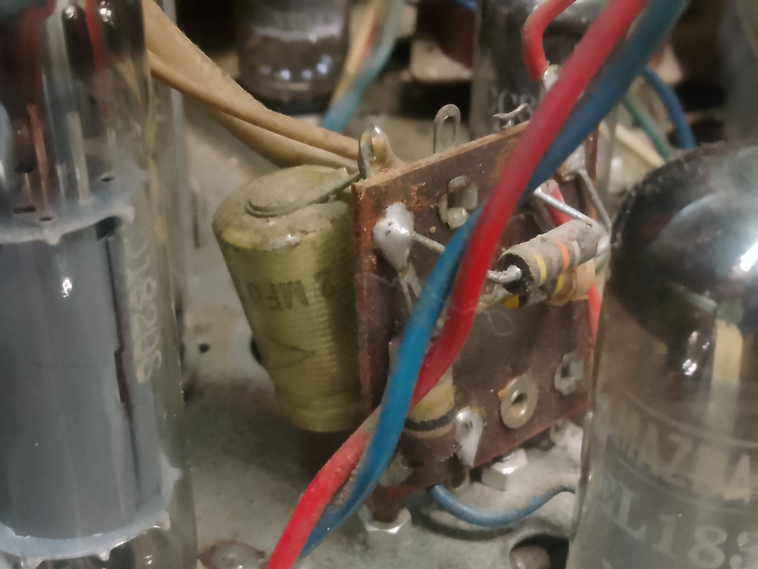 Fusible entrée secteur : c’est tout simplement le fusible en carton sur le transformateur, voir sur votre photo, cerclé en rouge.