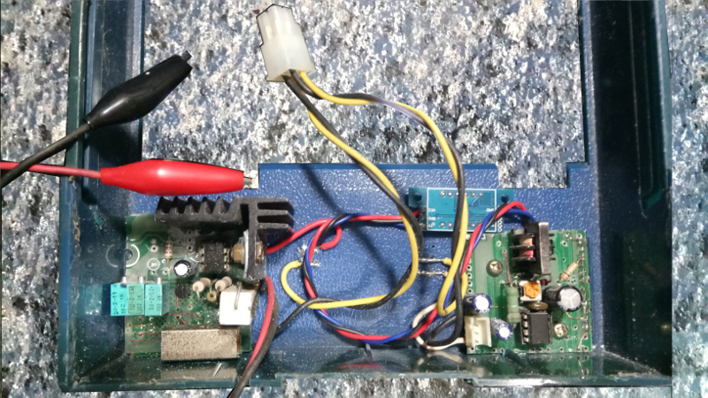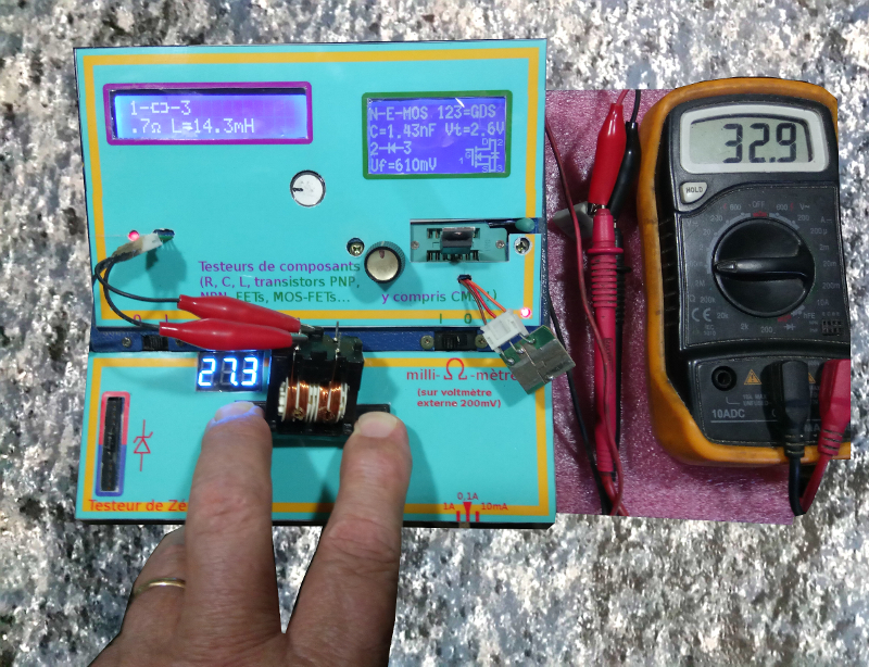 — Ici, avec une ancienne version de mon générateur de courant réglable monté dans un boîtier de multimètre HS !