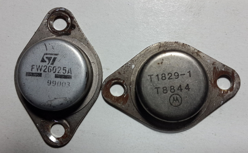 , récupérés de modules de ventilation d’habitacle automobile ! Mais pour trouver leurs caractéristiques… “Dur-dur” (Ah si, j’en tiens au moins 1 : le FW26025A – 100V 20A, Hfe ≥ 750 : belle “bête” !) !