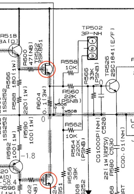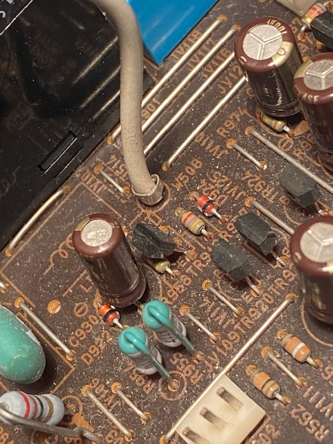 Par contre je cale toujours, j’ai pris les transistors de l’autre canal pour en avoir le coeur net.. et c’est pareil dès que je soude la patte S du TR 522 l’appareil reste en protection