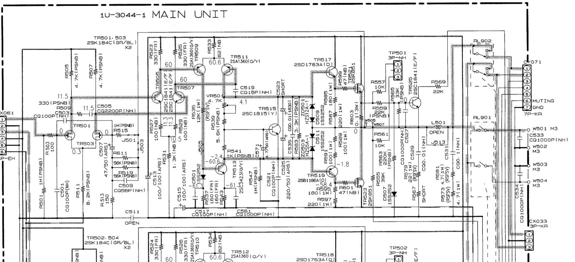 C’est pas encore résolu mais je progresse… R604 était coupée. Maintenant TR 522 soudé, l’ampli ne se met plus en protection mais toujours pas de son sur un canal.