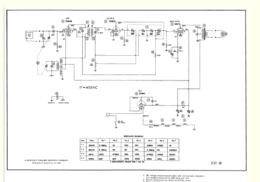 Celui-ci, est un peu à part. 12AU6 / 12AV6 / 50C5 / 35W4. On peut avoir affaire, a une amplification directe, mais comme, on peut également faire un changement de fréquence avec une 12AU6, on peut le garder comme candidat .