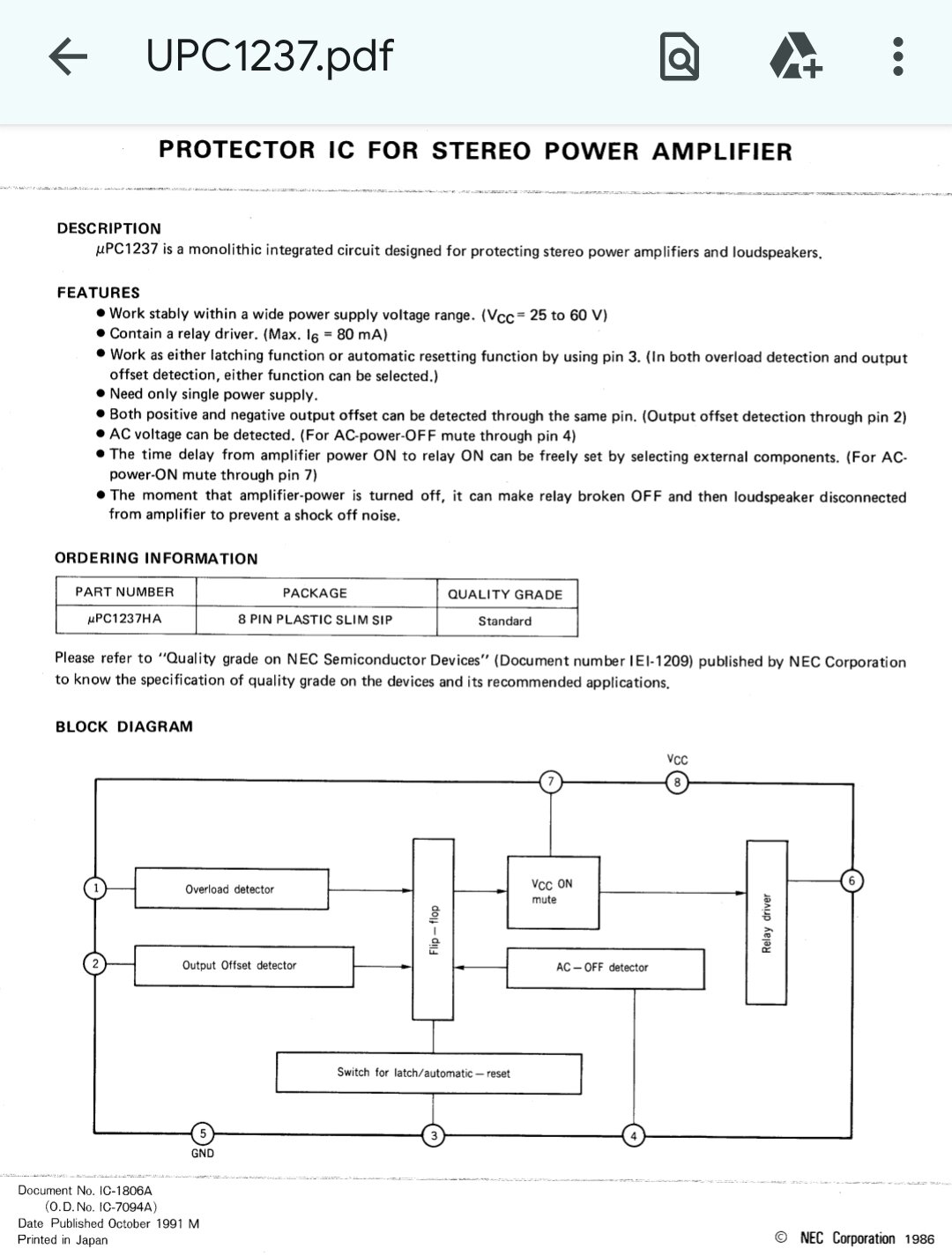 les infos du datasheet du 1237